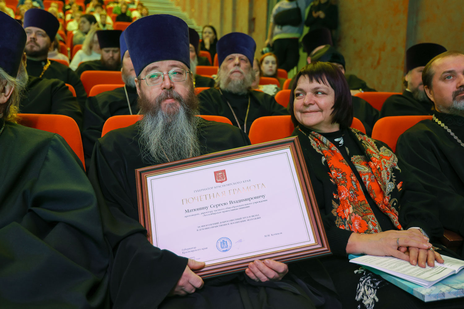 Также, Роман Геннадьевич вручил директору Лесосибирской православной гимназии протоиерею Сергию Матюнину благодарственное письмо от губернатора Красноярского края Михаила Котюкова «за многолетний добросовестный труд и вклад в духовно-нравственное воспитание молодежи».
