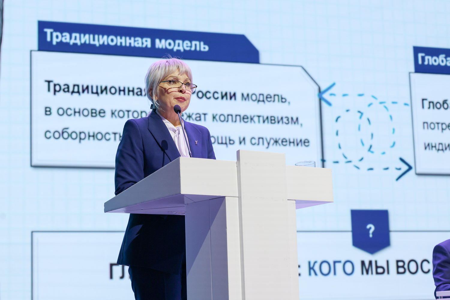 На пленарном заседании также выступила директор филиала Российского общества «Знание» в Красноярском крае, заместитель директора по коммуникациям и развитию Института управления бизнес-процессами Сибирского федерального университета Ирина Багдасарьян. Она рассказала о просветительской миссии Российского общества «Знание» в сохранении духовно-нравственных ценностей современного общества.