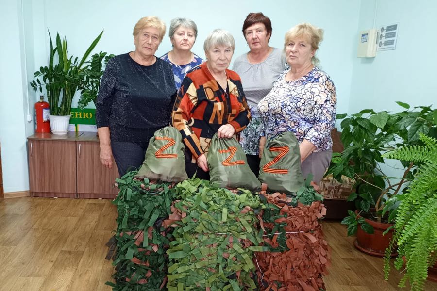 Помогают фронту, невзирая на возраст, и «серебряные» волонтеры Алатырского комплексного центра социального обслуживания населения. На этой неделе они отправили на передовую очередную партию маскировочных сетей. Также женщины собрали «Рюкзаки помощи» для раненых.