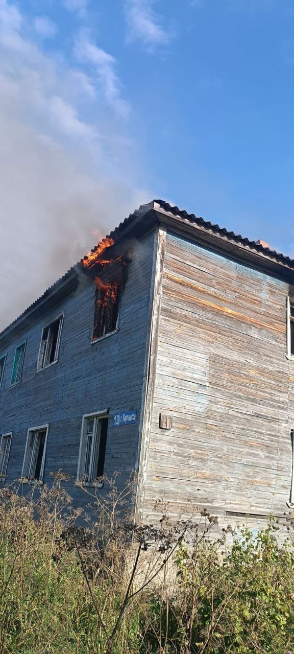 Вчера днем в Беломорске вспыхнул двухэтажный деревянный дом на улице Порт-шоссе, 13.