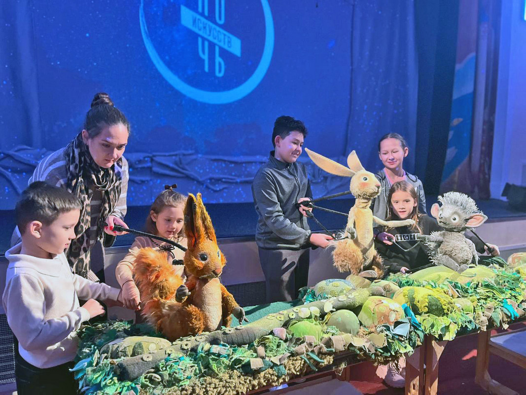 В кукольном театре зрителей ждало особое волшебство — иммерсивная постановка, рассказывающая историю театра начиная с его рождения в 1945 году. А на мастер-классе по теневому театру обычный фонарик и ловкость рук создавали на экране целые истории.