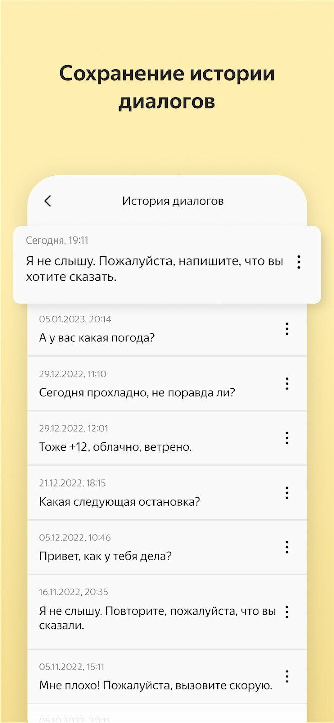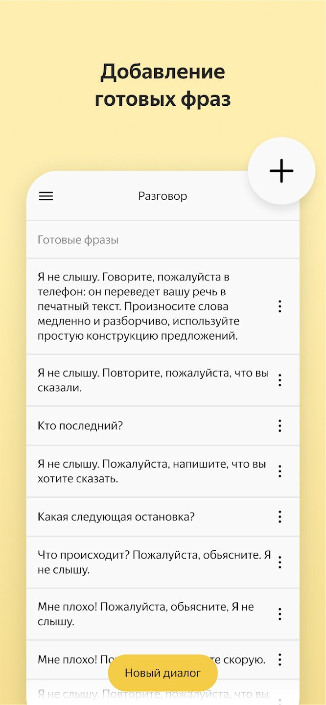 Если человек слышит плохо, обновлённая версия программы распознаёт фразы собеседника и показывает текст на экране. И наоборот. Если человек говорит плохо, он может набрать фразу на телефоне, и приложение озвучит написанное. У пользователя есть возможность заранее сохранить определённые реплики, которые могут ему понадобиться в той или иной ситуации, например в поликлинике или любом другом государственном учреждении. Приложение также сохраняет историю общения, поэтому всегда можно вернуться к прошлому диалогу.