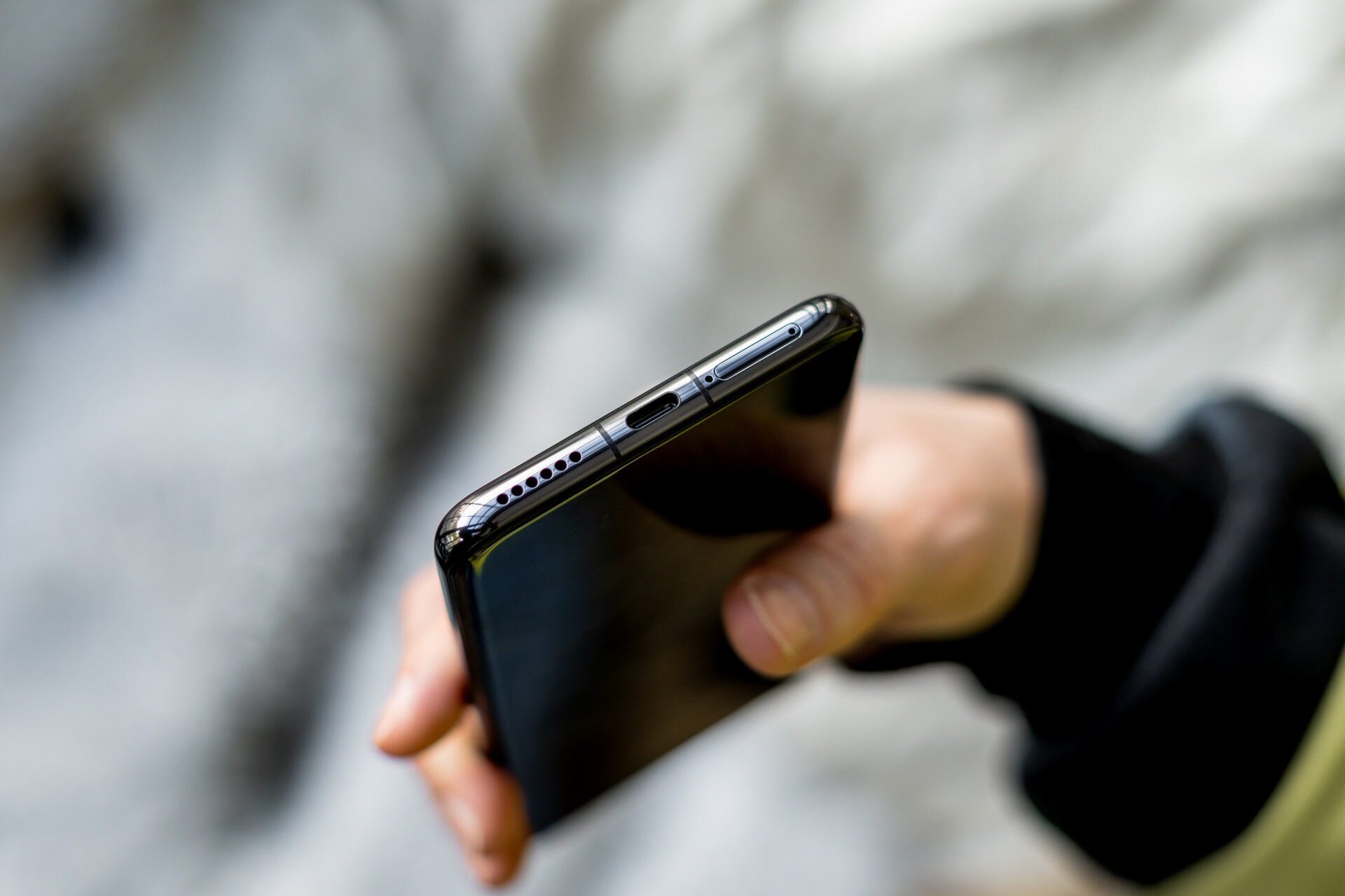 Эргономика флагманских смартфонов серии P уже более 3 лет придерживается скругленного дизайна дисплея и задней крышки. Если к экрану-водопаду многие относятся критично, но про него я расскажу ниже, то плавные переходы с тыльной стороны на торцы смартфона положительно влияют на удобство хвата. Дополнительно они создают ощущение меньшей толщины корпуса (хотя она составляет 8,3 мм), а грани не врезаются в ладонь.