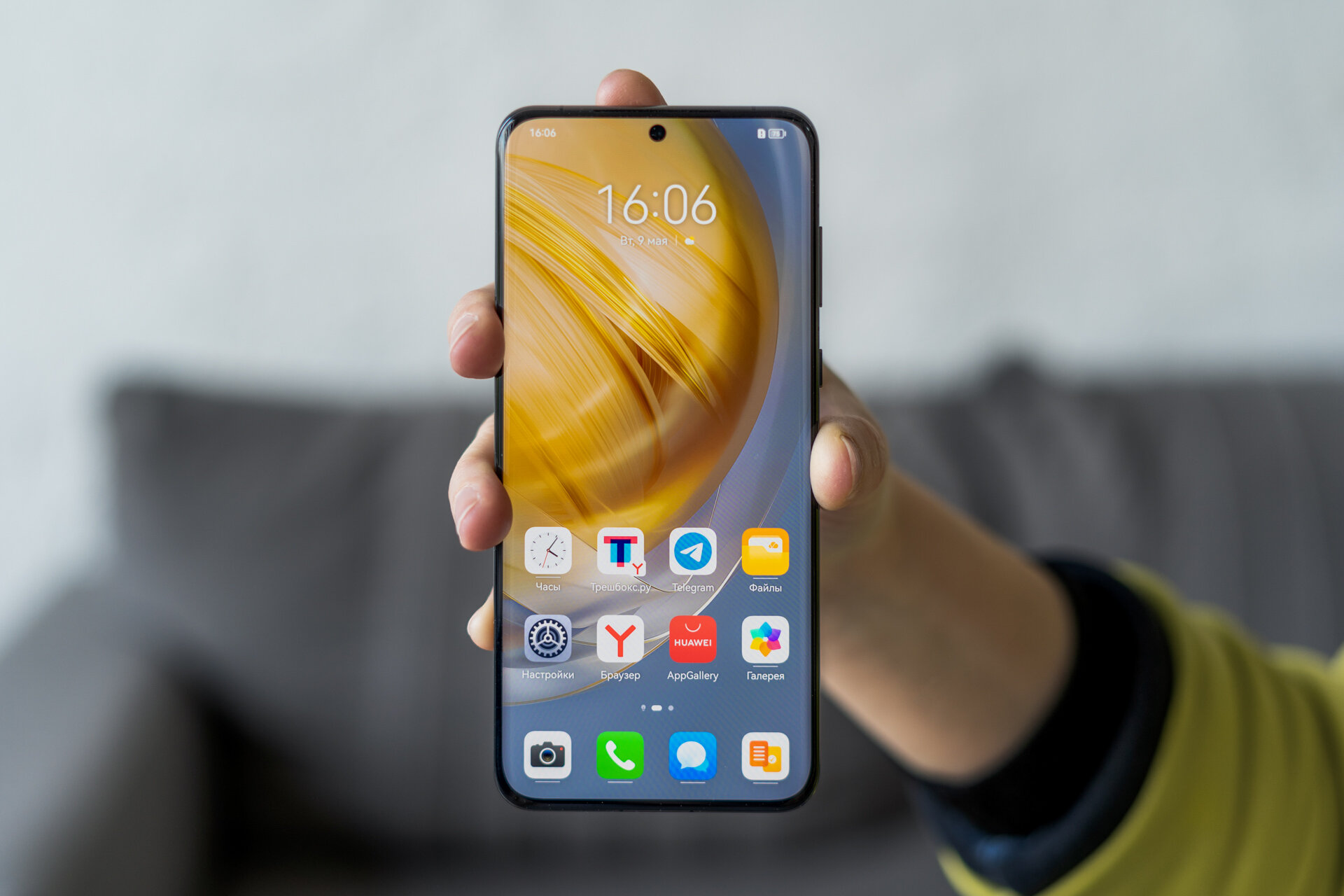 Лицевая часть Huawei P60 Pro представляется не менее инновационной, нежели комплект камер с тыльной стороны. Матрица типа AMOLED с диагональю 6,67 дюйма, разрешением 2700×1220 пикселей и очень высокой плотностью сетки в 444 PPI. Максимальная яркость доходит до 1200 нит, что очень хороший показатель, при котором солнце на улице не помеха для восприятия информации с экрана.
