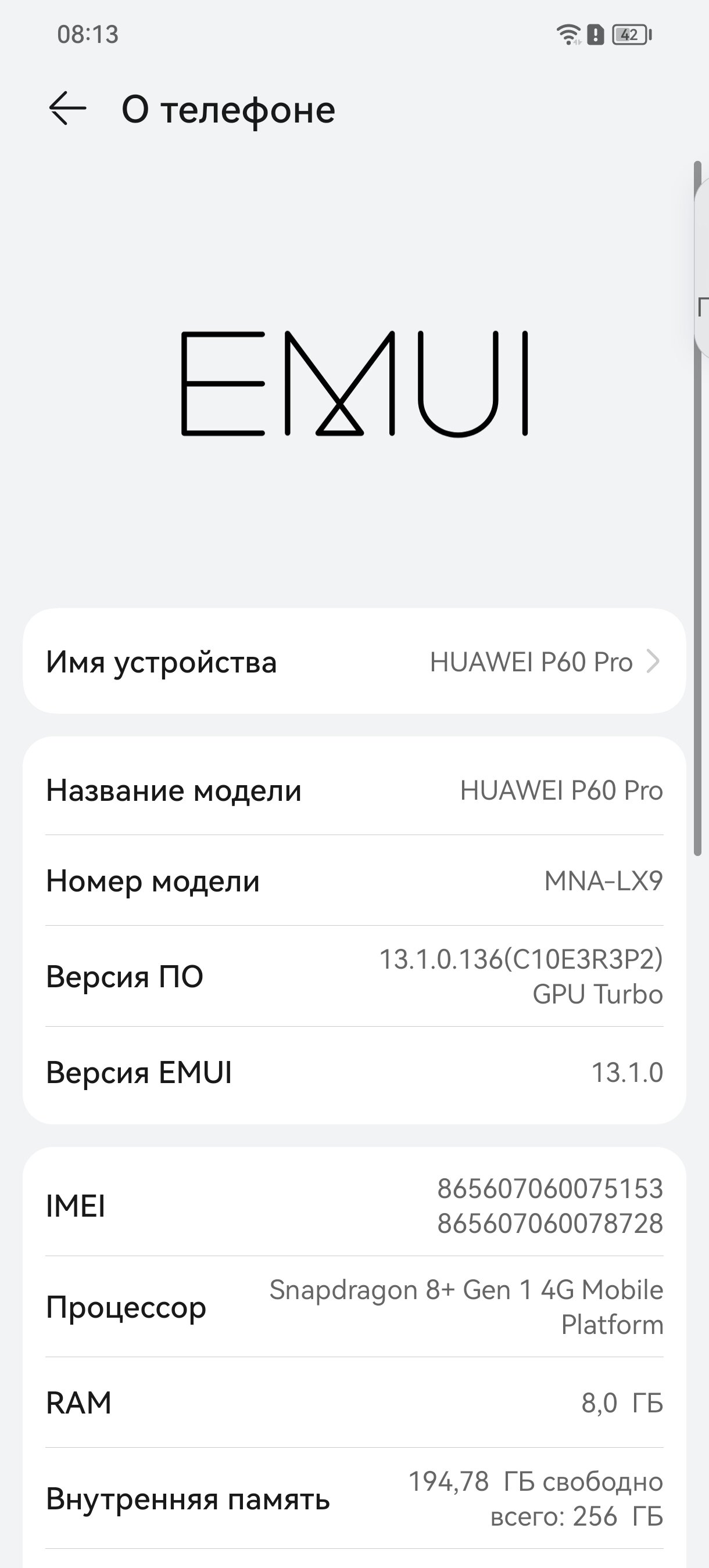 - Операционная система: HarmonyOS 3.1, EMUI 13.1.
