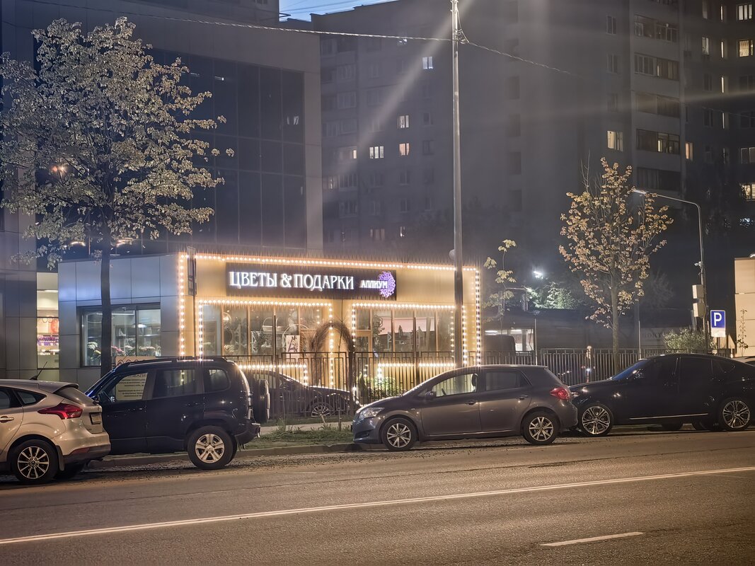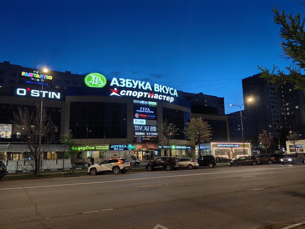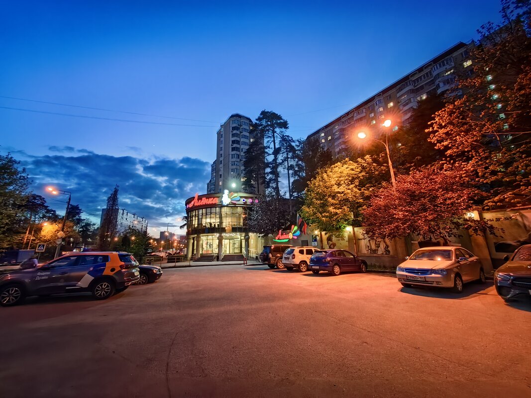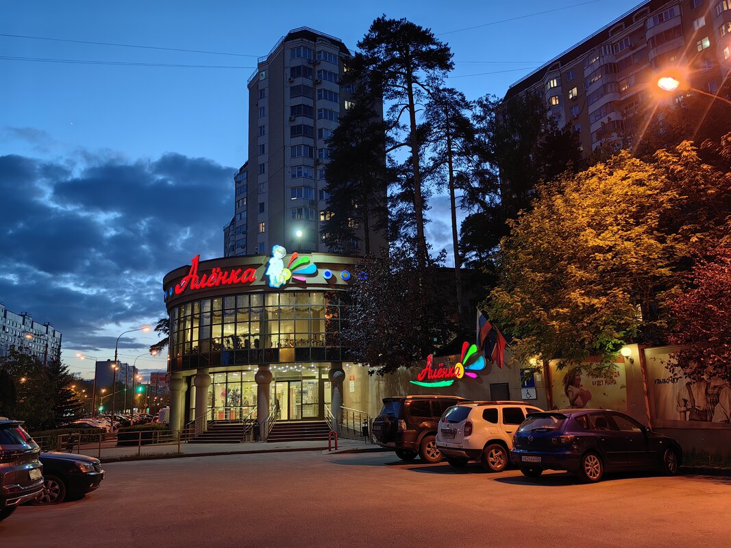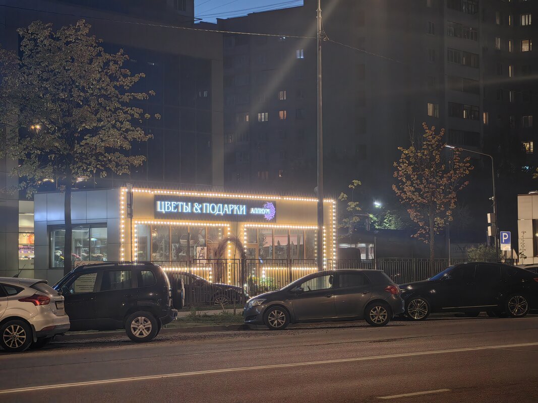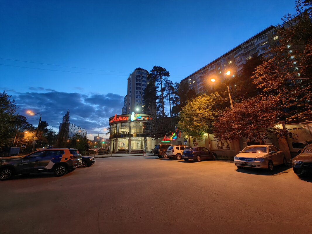 Из трёх модулей ночной режим работает лучше всего именно на телевике. В нем неоновые лампы избавляются от ореола вокруг, а контуры снимаемых объектов приобретают большую резкость. Но без нюансов не обошлось. Цветопередача может уходить в легкий желтый оттенок, а светлые участки становятся чересчур контрастными.