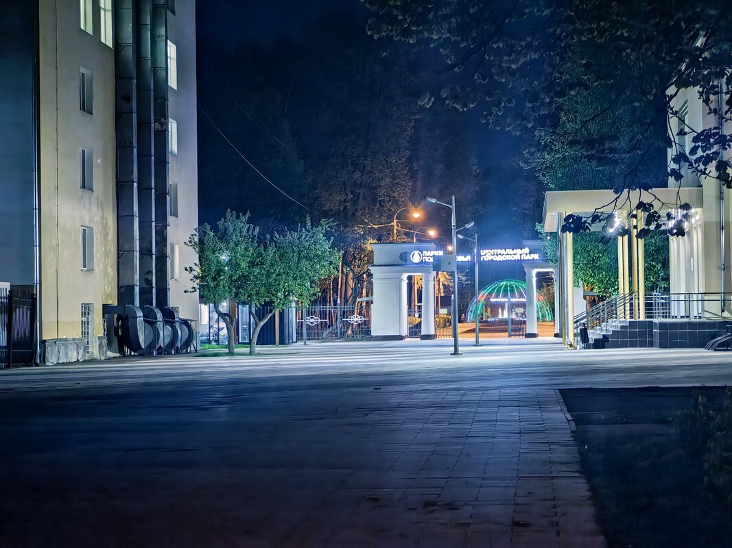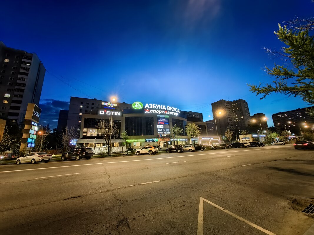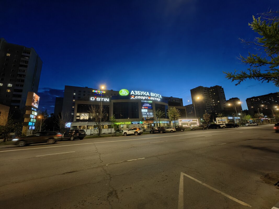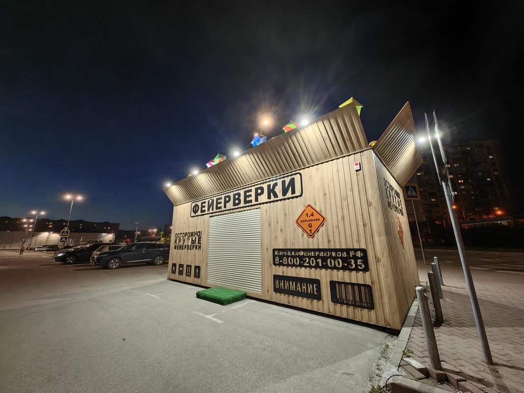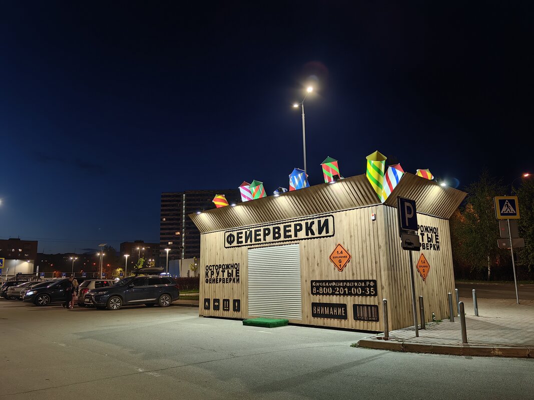 Из трёх модулей ночной режим работает лучше всего именно на телевике. В нем неоновые лампы избавляются от ореола вокруг, а контуры снимаемых объектов приобретают большую резкость. Но без нюансов не обошлось. Цветопередача может уходить в легкий желтый оттенок, а светлые участки становятся чересчур контрастными.