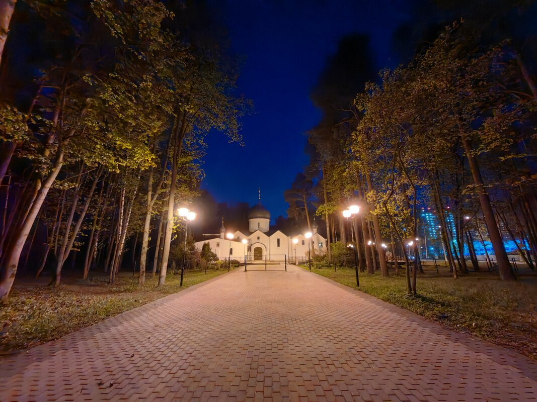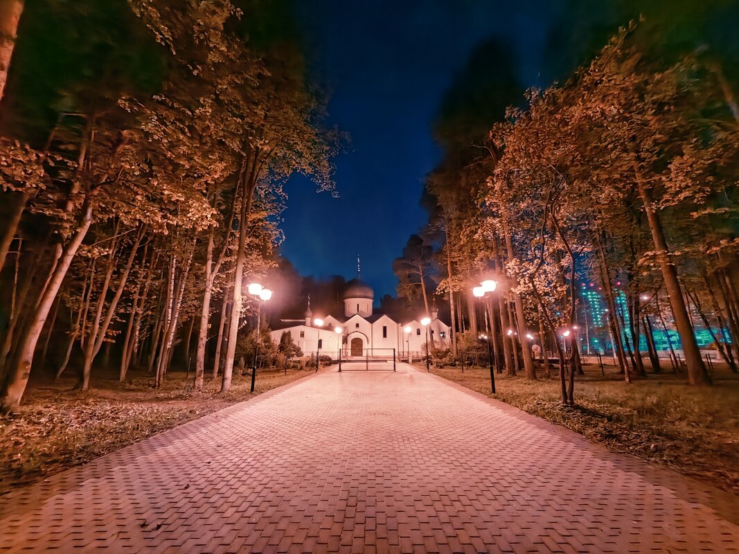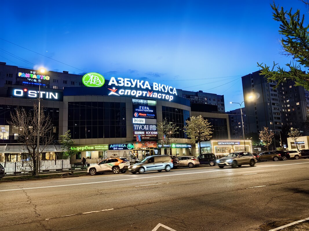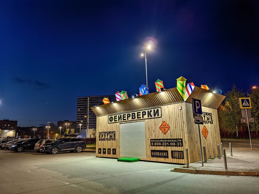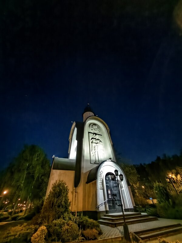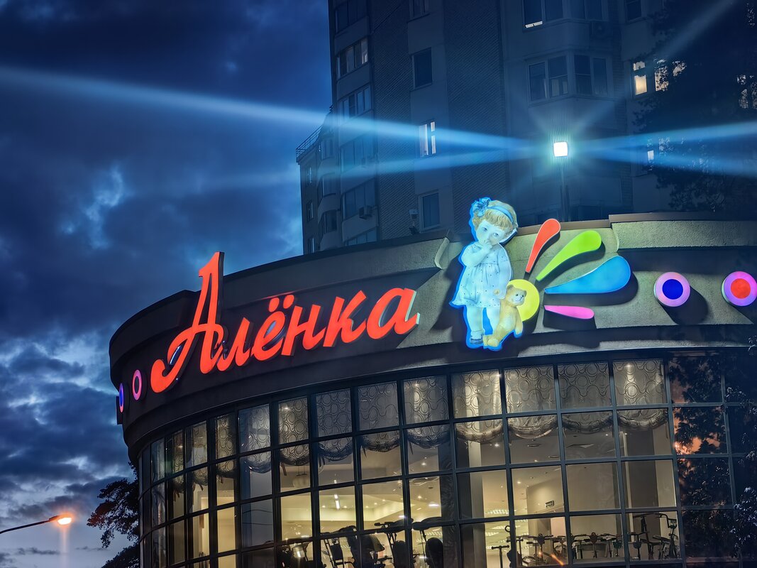 Из трёх модулей ночной режим работает лучше всего именно на телевике. В нем неоновые лампы избавляются от ореола вокруг, а контуры снимаемых объектов приобретают большую резкость. Но без нюансов не обошлось. Цветопередача может уходить в легкий желтый оттенок, а светлые участки становятся чересчур контрастными.