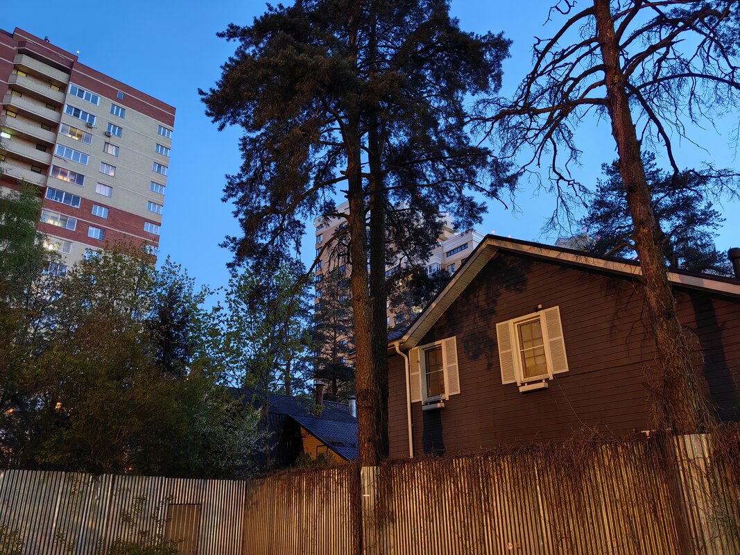В темное время суток при относительно несложных сценариях отличий между обычным и ночным режимом минимум. Длинная выдержка в 3 секунды делает совсем темные участки более резкими, давая возможность разглядеть информацию в тени. Но обычный режим мне понравился больше: он снимает быстрее, не делает из ночи день и корректнее передает цвета, при этом не сильно проигрывает в резкости.
