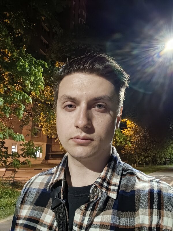 Селфи-камера имеет разрешающую способность 13 Мп и апертуру f/2.4. Её главная особенность — очень широкий угол охвата. Понравилась высокая четкость и правильная передача цвета кожи днем. По умолчанию не активированы алгоритмы сглаживания и прочие улучшайзеры, хотя многие смартфоны из Поднебесной этим грешат. А вот ночью скинтон уходит в желтоватый оттенок, хотя детализация по-прежнему на высоте.