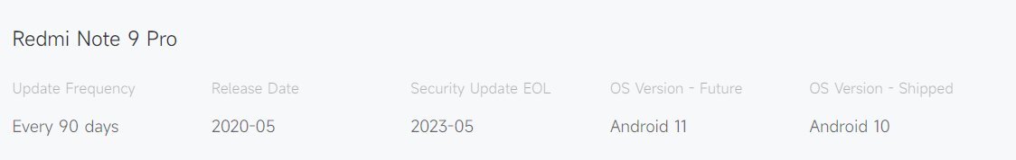 С 27 мая в перечень заброшенных устройств добавлена глобальная версия бюджетного Xiaomi Mi Note 10 Lite, чего стоило ожидать после появления Mi 10 Lite Zoom (эксклюзивный оригинал для рынка Китая) в последних числах апреля. Таким образом, смартфону теперь абсолютно точно не достанется MIUI 14. В то же время прекращается работа над патчами безопасности для всей серии Redmi Note 9, включая Redmi Note 9S, Redmi Note 9 Pro и Redmi Note 9 Pro Max. Последней версией ОС в их EOS-документах также указана Android 11 — получается, пользователям больше не стоит ждать Android 12, хотя определённые обещания всё же заявлялись.