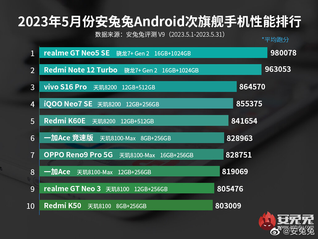 - Redmi Note 12 Turbo — 963 043 балла