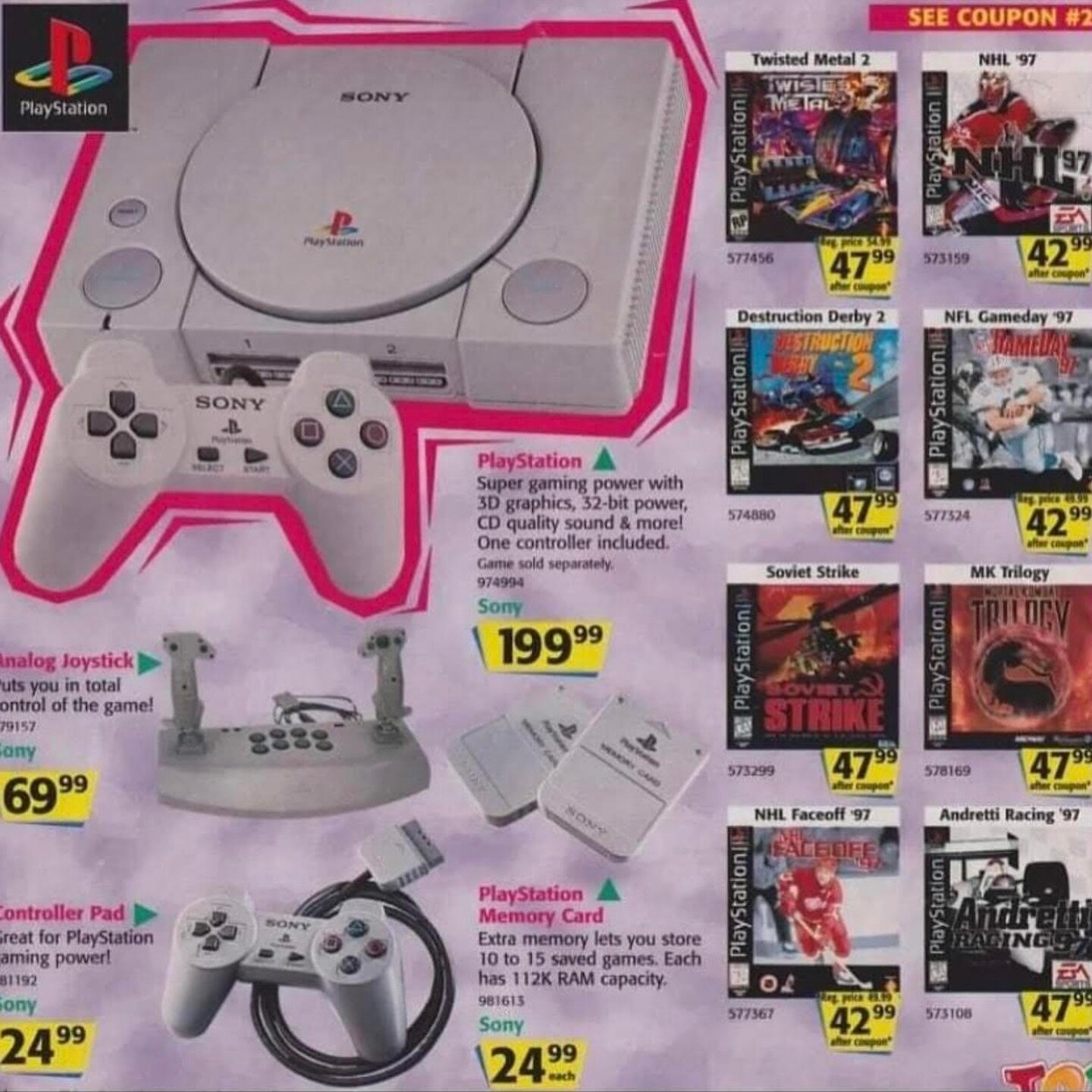 Впрочем, Sony подготовила козыри не только для разработчиков, но и для будущих покупателей PlayStation. Помимо настоящей 3D-графики, игр на компакт-дисках, качественного звука и удобного геймпада (сильно похожего на контроллер от SNES, только с «ручками» для большей эргономичности) компания привлекла внимание аудитории банально ценой. Дело в том, что Sega выпустила свою передовую консоль Saturn в продажу 22 ноября 1944 года за 44 800 японских иен (это около 440 долларов на тот момент), а Sony отправила PlayStation на прилавки 3 декабря 1994-го за 39 800 иен (около 390 долларов).