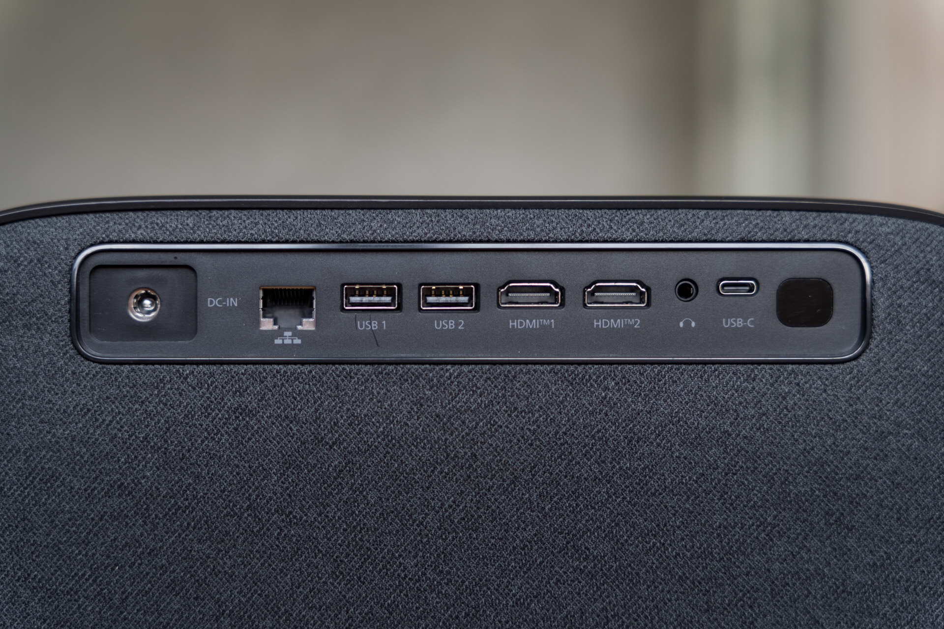 На задней панели устройства расположены разнообразные порты, включая разъем для подключения к проводному интернету, два HDMI-порта, два USB-A, аудиовыход 3,5 мм и USB-C.