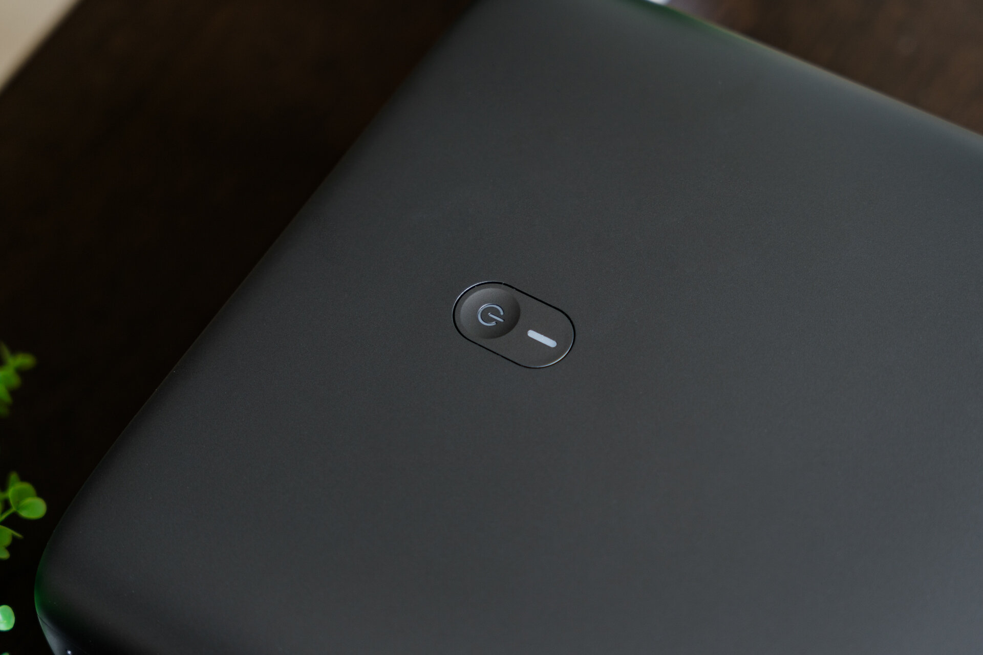 Сверху расположился единственный элемент физического управления проектором в виде кнопки включения и выключения. Других клавиш на корпусе нет, что сильно привязывает к пульту управления