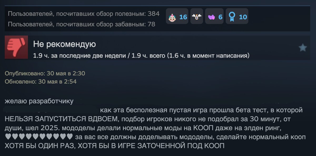 Дело в том, что специалисты из From Software не подумали предоставить геймерам возможность проходить игру вдвоём, так что если двум товарищам не удалось найти третьего тиммейта, им придётся воспользоваться подбором случайного игрока из сети. Но эта система работает из рук вон плохо — некоторым геймерам пришлось ждать по 2-3 часа, прежде чем клиент подобрал им сопартийца. И это с учётом того, что ночью онлайн в Elden Ring Nightreign превысил 300 тысяч игроков, так что, теоретически, проблем с подбором быть не должно. Но даже если игрокам удавалось найти себе партию, играть со случайным геймером из сети было банально неудобно.