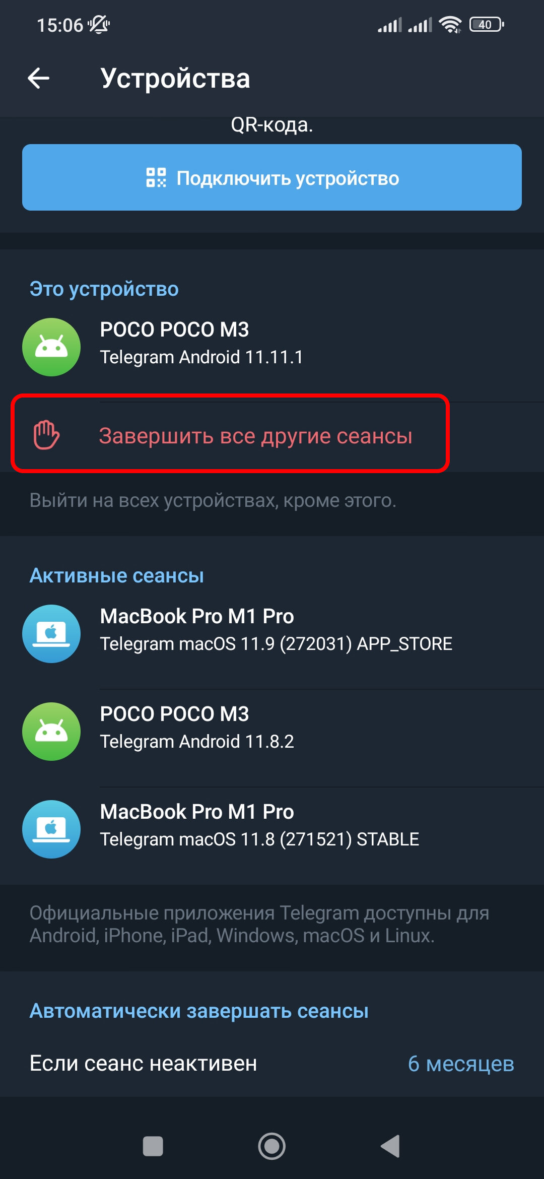 Отключите посторонние сессии в мессенджерах и социальных сетях