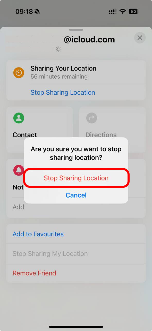 - нажмите на кнопку «Не делиться геолокацией» (Stop Sharing My Location);