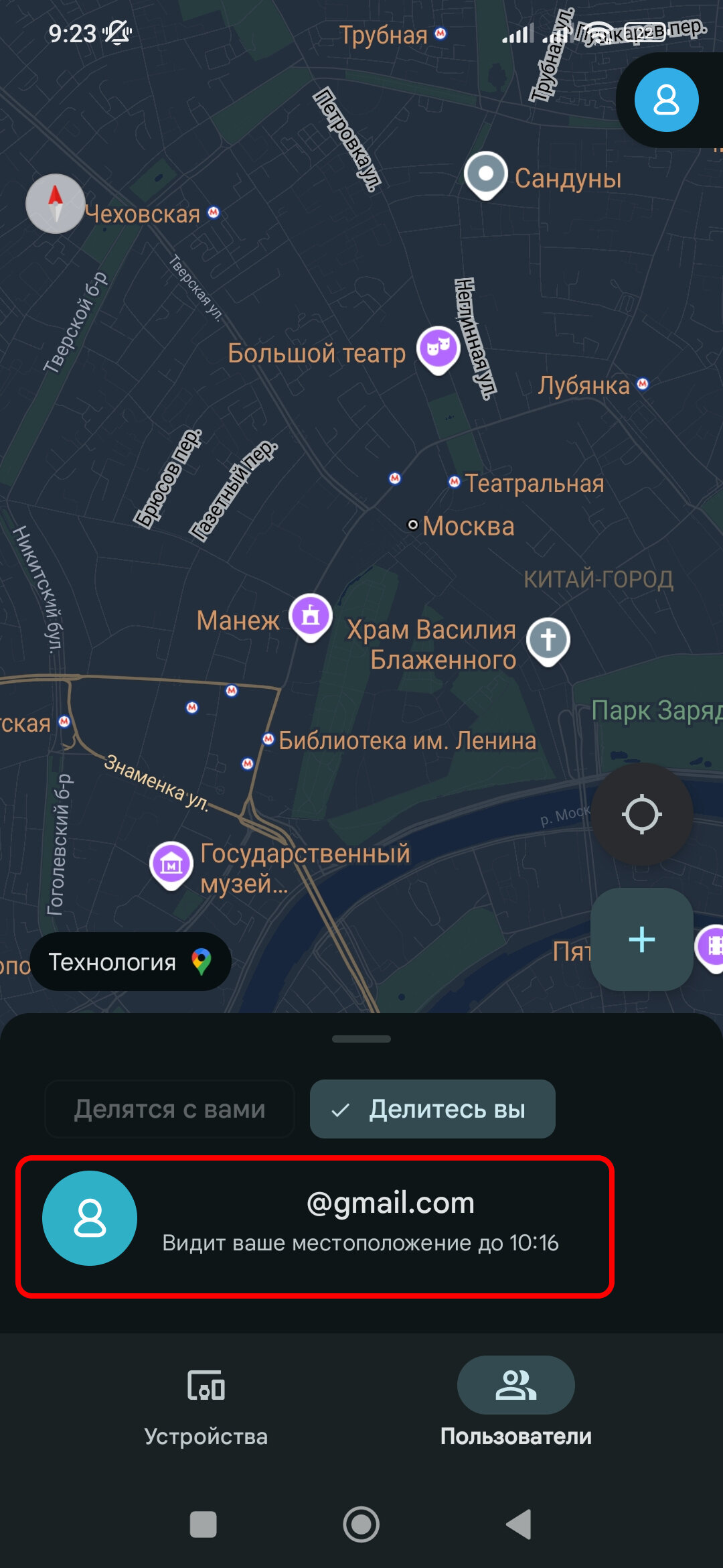 - нажмите в списке на пользователя, с которым вы больше не хотите делиться геолокацией;