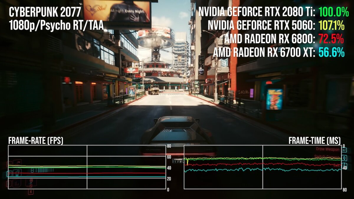 В результате автор канала Digital Foundry пришёл к выводу, что RTX 2080 Ti на текущий момент, спустя целых семь лет и три новых поколения после релиза, вполне можно назвать конкурентоспособным решением в разрешении 1080p или даже 1440p (правда, в этом случае в тяжёлых играх для играбельной частоты кадров придётся использовать DLSS).