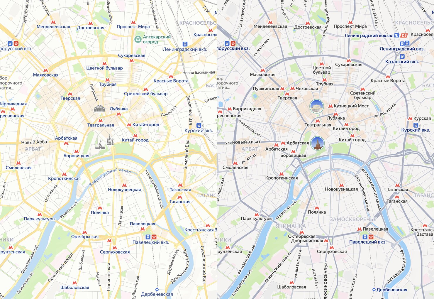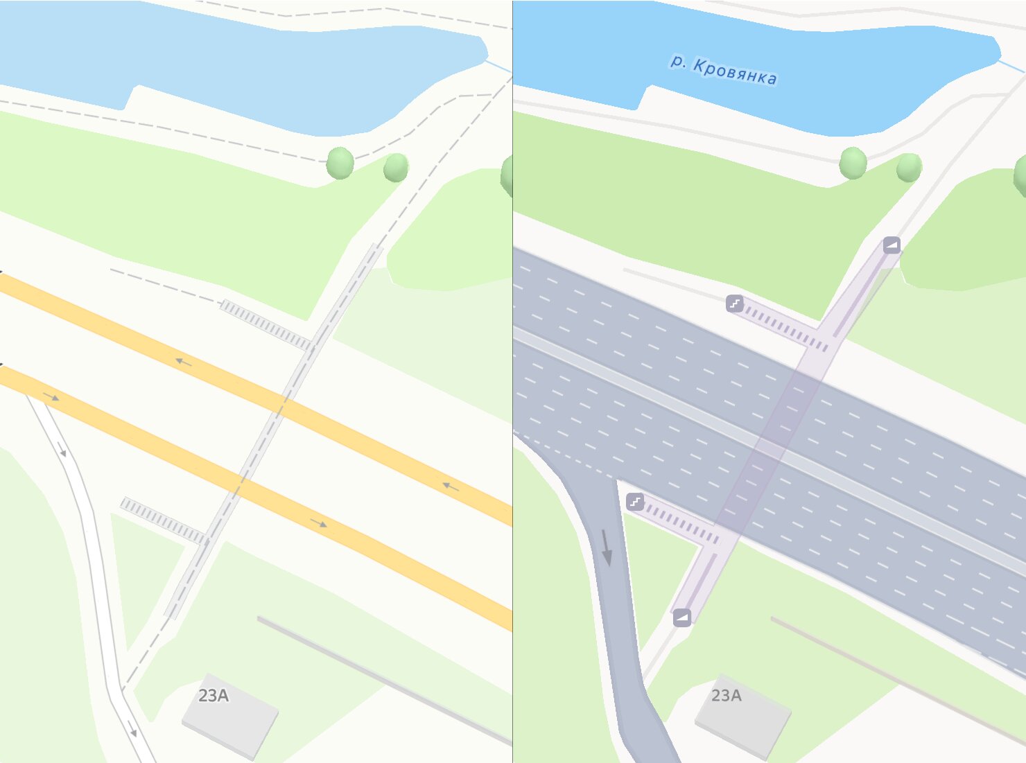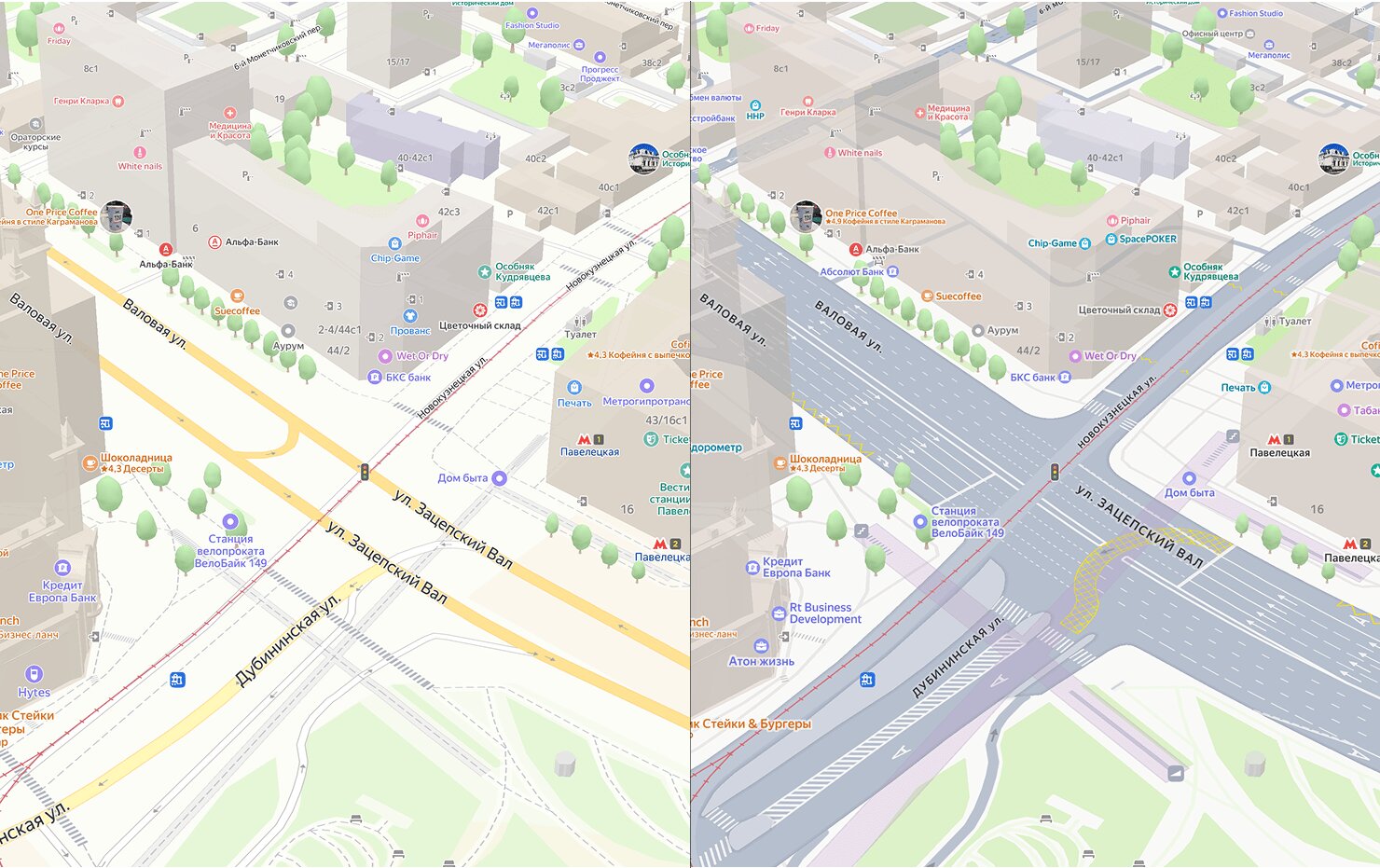 К примеру, ставший за многие годы привычный жёлтый цвет дорог сменили на серый, чтобы приблизить визуальное отображение карт к реальности — ведь в жизни они чаще всего серые. Это в том числе позволило нанести детальную дорожную разметку, которая, в свою очередь, тоже добавляет реализма и помогает лучше ориентироваться.