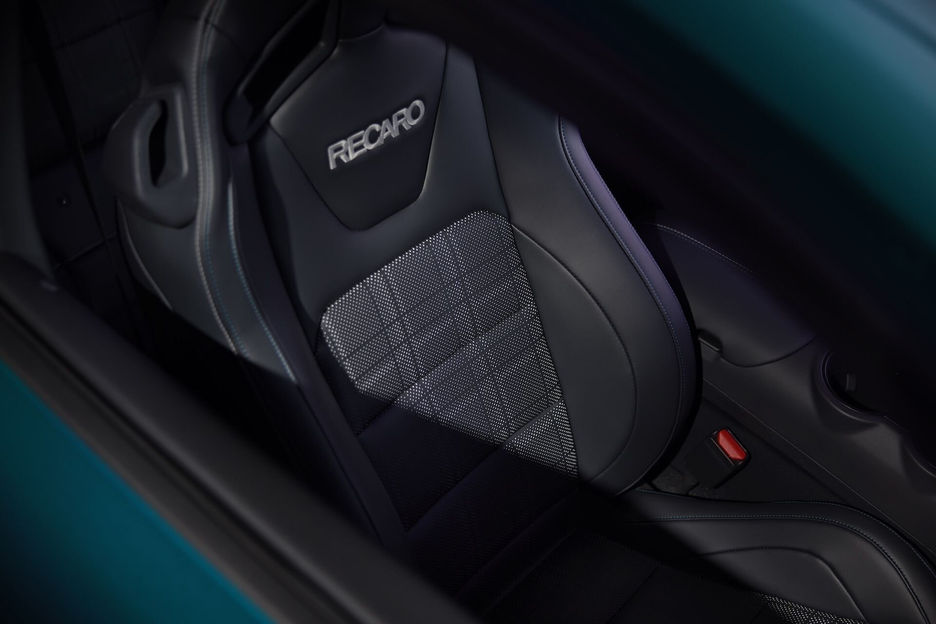 В салоне Mustang FX можно заметить необычные кресла — они частично отделаны кожей, а также имеют вставки из ткани с клетчатым рисунком, которую Ford использовал сорок лет назад. Примечательно, что такой рисунок сидений доступен не только для стандартных кресел, но и для спортивных ковшей Recaro, которые продаются отдельно в виде опции.