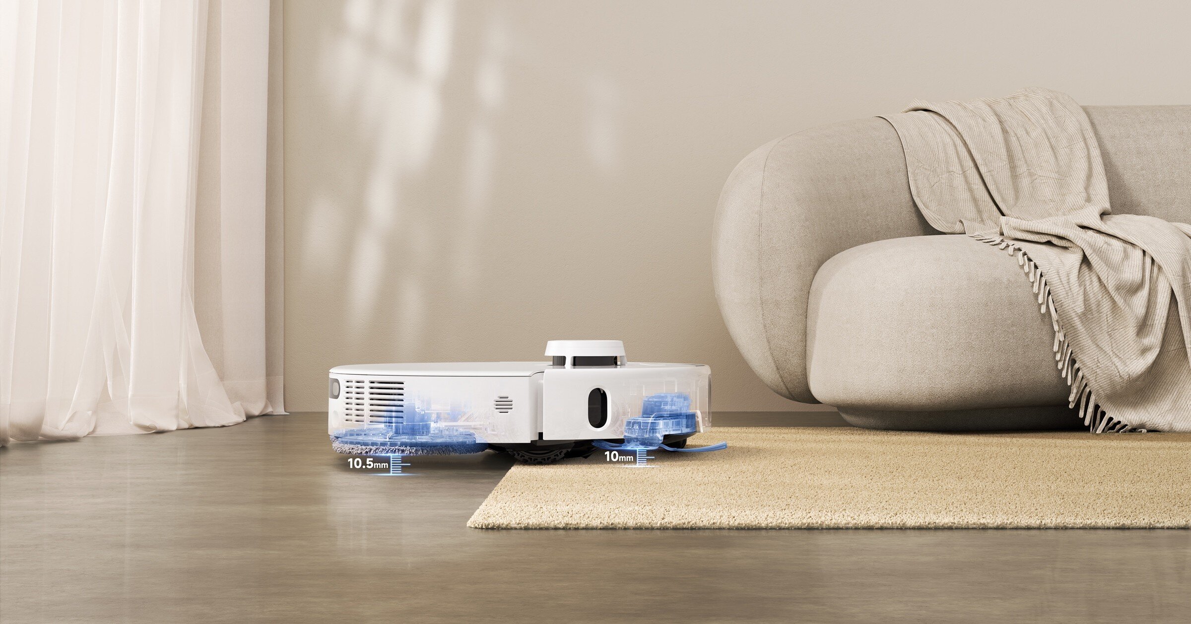 Trouver P50 Pro Ultra оснащён системой автоматического снятия насадок, с помощью которой пылесос снимает щётки или поднимает их на высоту 10,5 мм, что исключает намокание ковров. Эффективную уборку в углах, вдоль краев, плинтусов и под мебелью обеспечивает система FlexReach. Главная особенность решений Trouver — это использование принципов Embodied AI и когнитивной логики: устройства анализируют обстановку, распознают типы поверхностей и загрязнений и самостоятельно подстраивают свои действия. AI RGB-камера с LED-подсветкой и сенсор 3D Structured Light позволяют пылесосу точно ориентироваться даже в тёмных зонах.