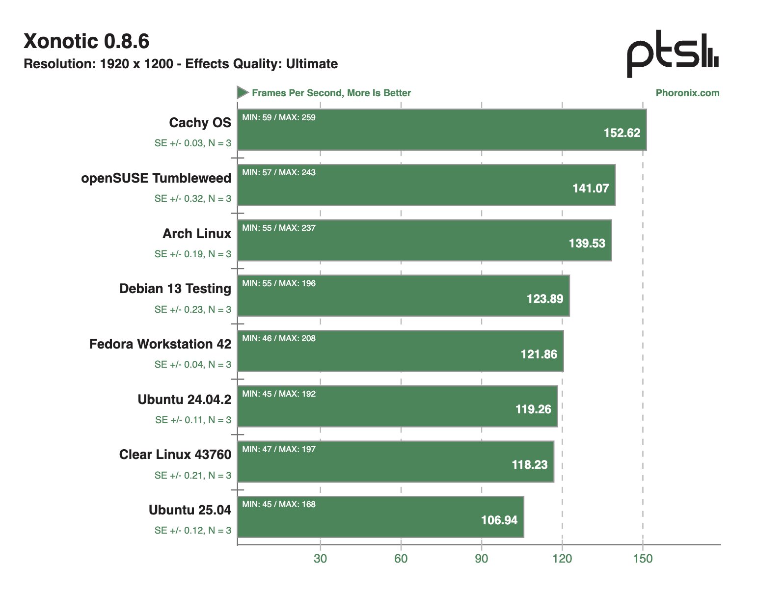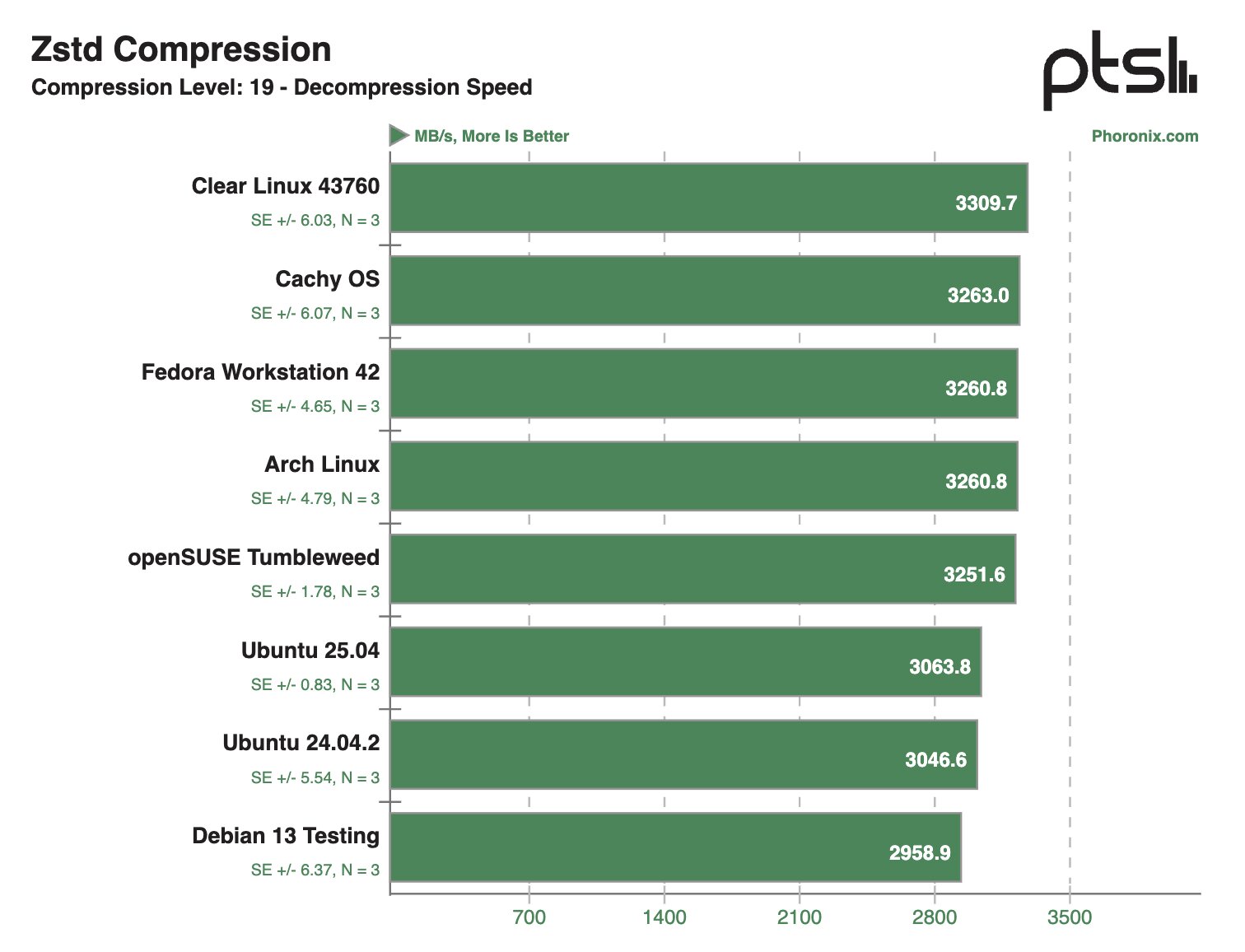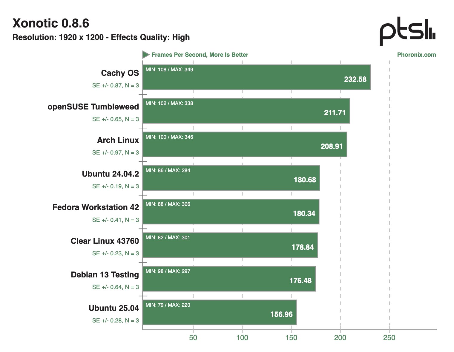 После проведения десятков тестов на ноутбуке Framework 12 наибольшую производительность в бенчмарках продемонстрировала система на базе Clear Linux — в 28,1% тестов этот дистрибутив занял первое место в рейтинге. На втором месте расположилась CachyOS — в 22,8% сценариев этот дистрибутив занимал пьедестал.