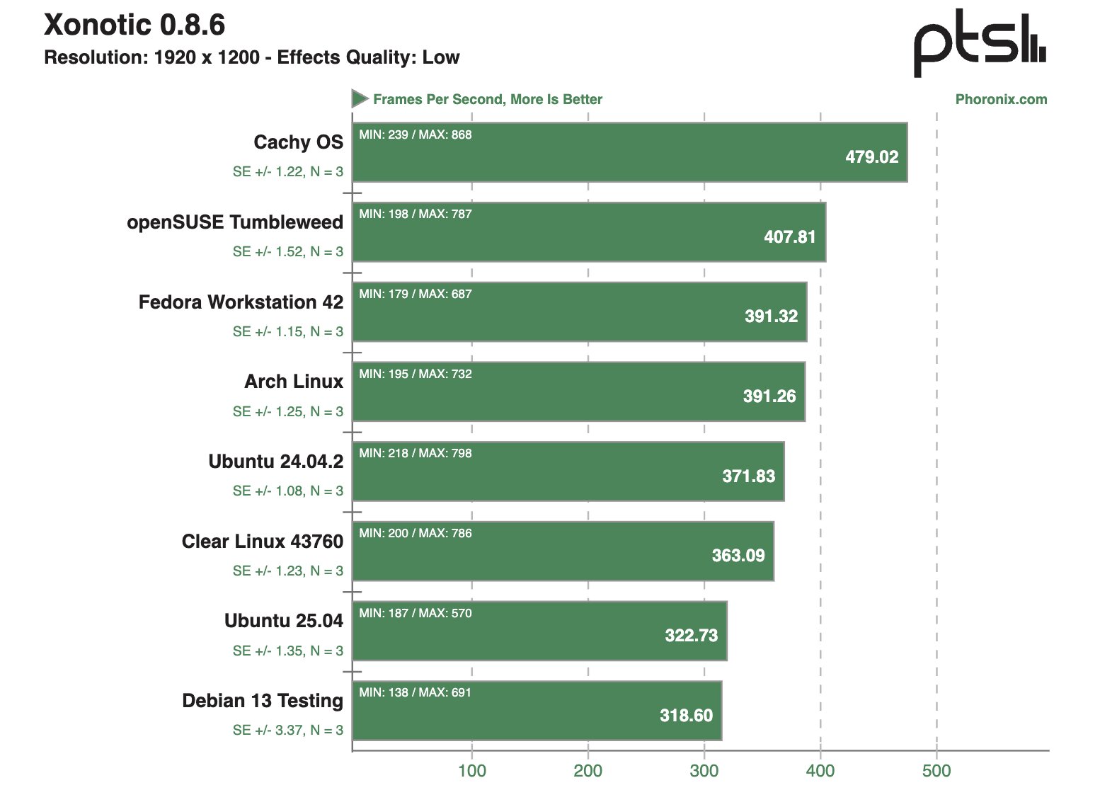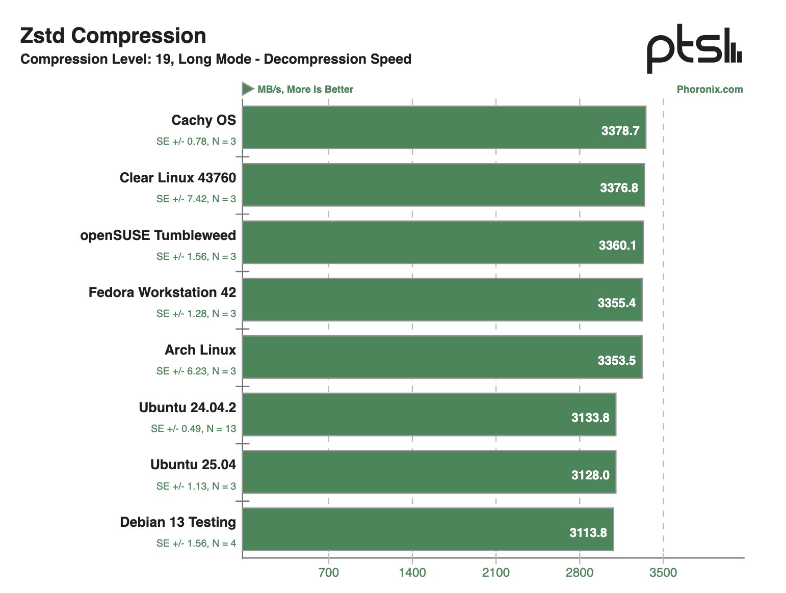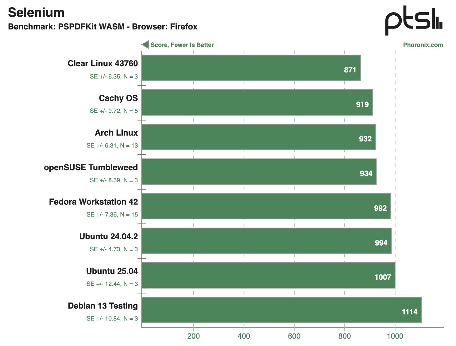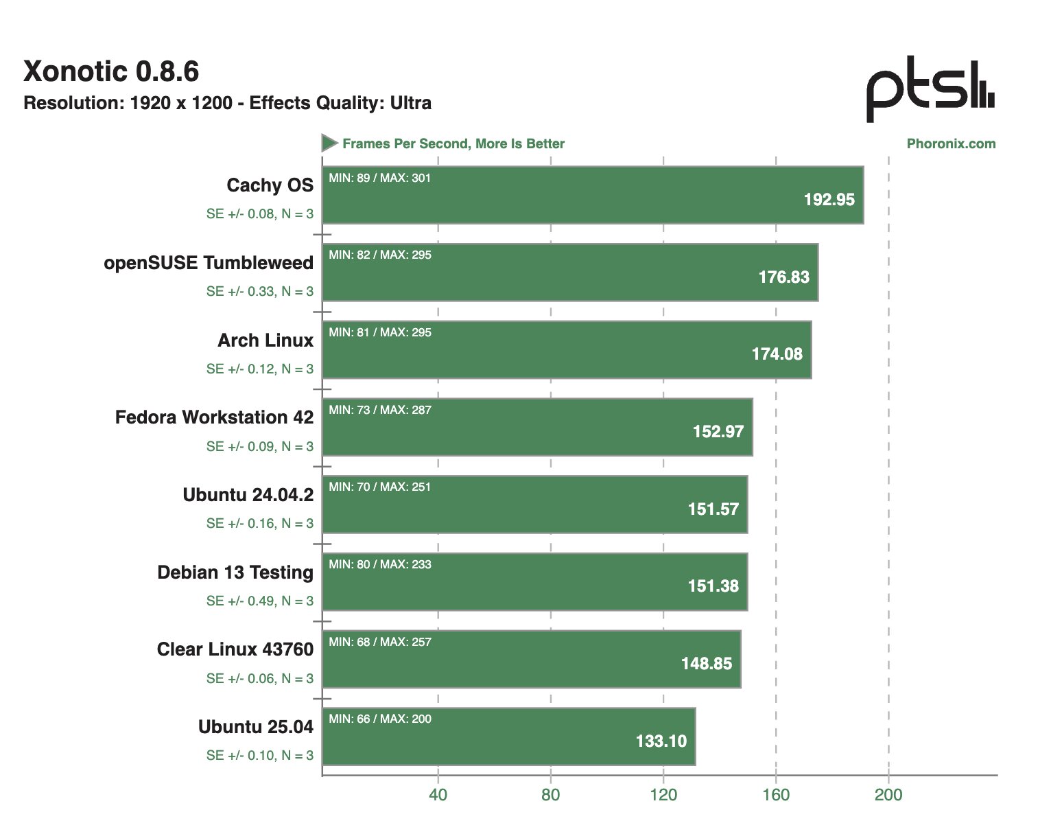 После проведения десятков тестов на ноутбуке Framework 12 наибольшую производительность в бенчмарках продемонстрировала система на базе Clear Linux — в 28,1% тестов этот дистрибутив занял первое место в рейтинге. На втором месте расположилась CachyOS — в 22,8% сценариев этот дистрибутив занимал пьедестал.