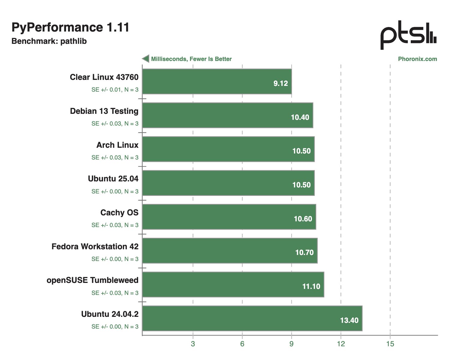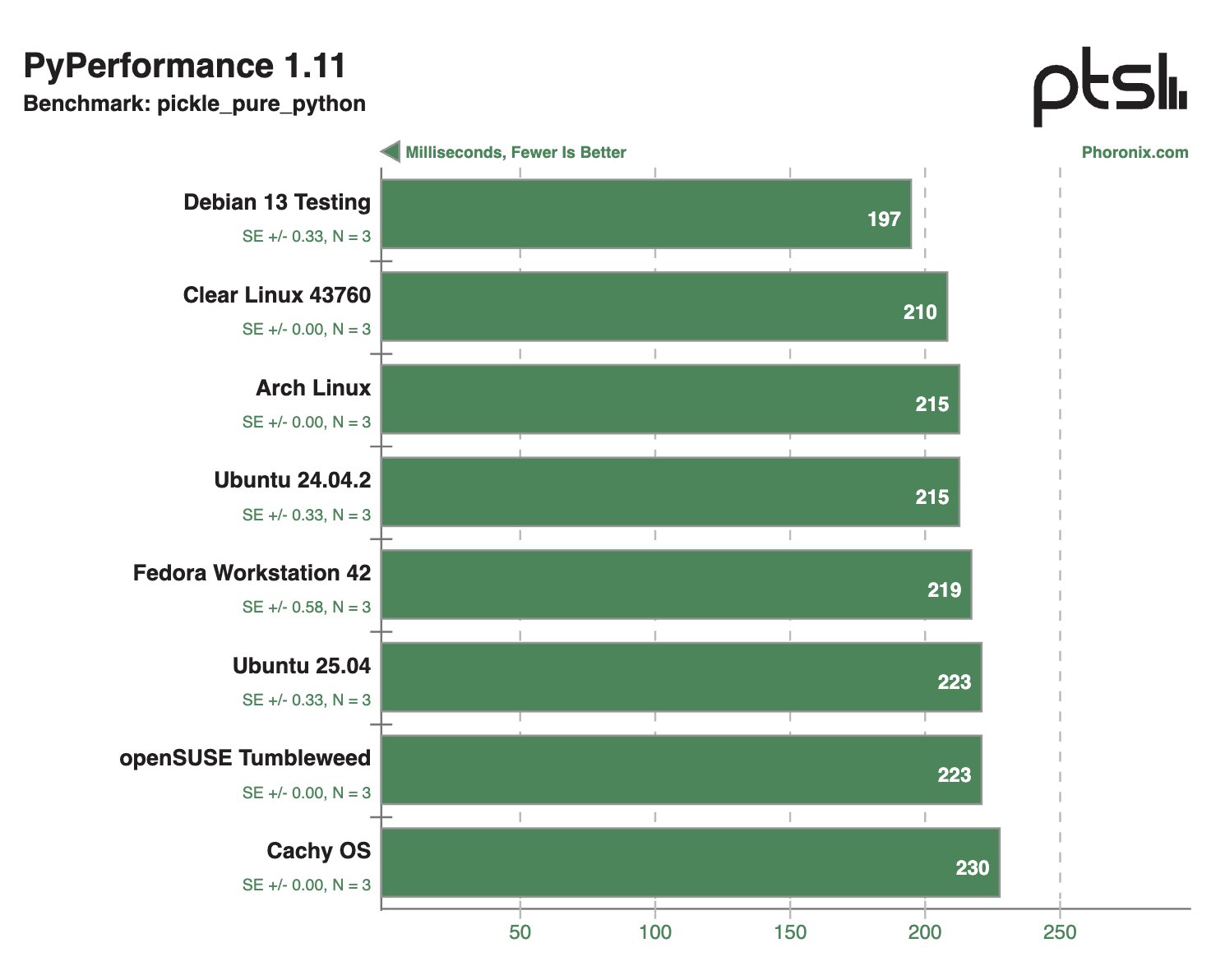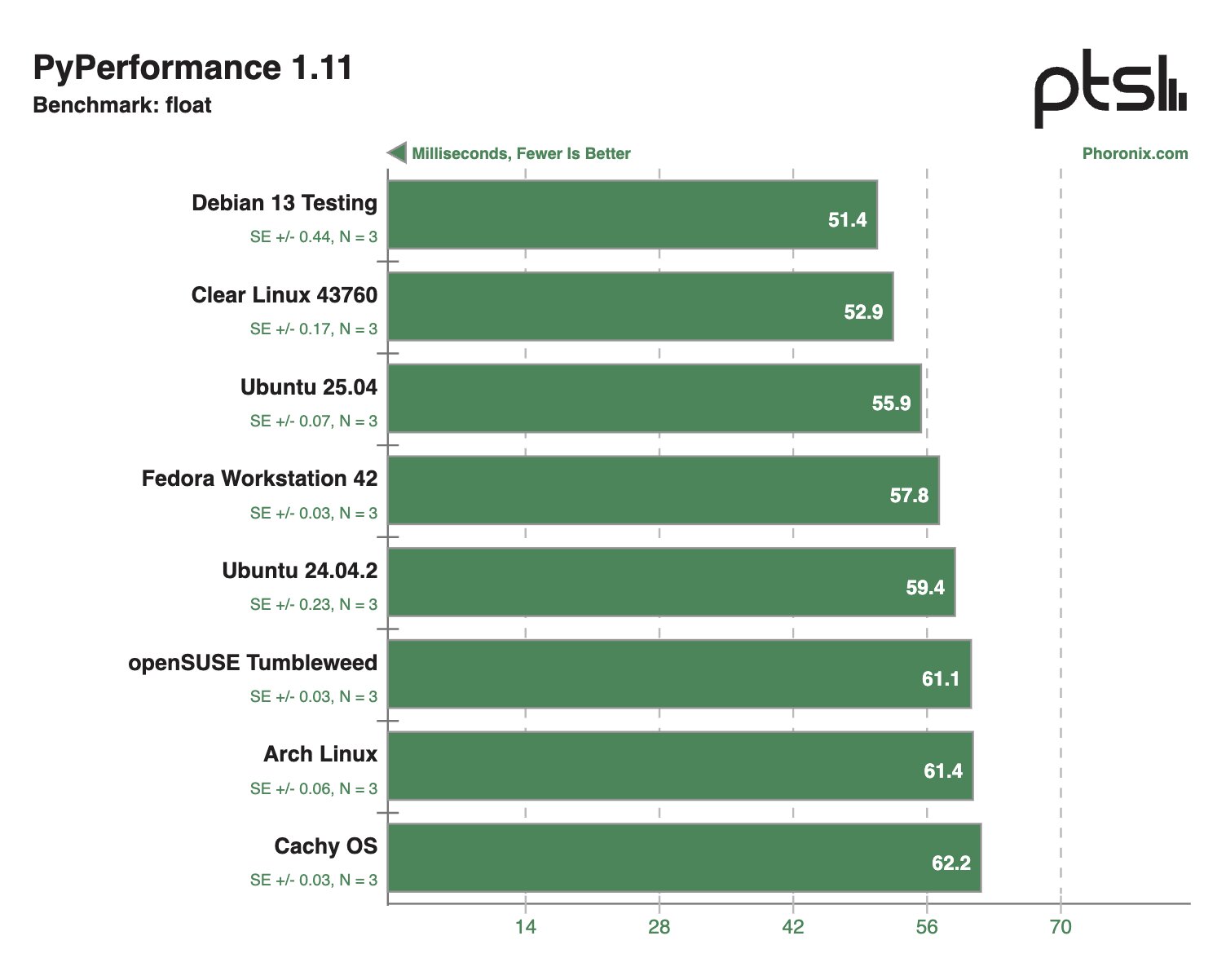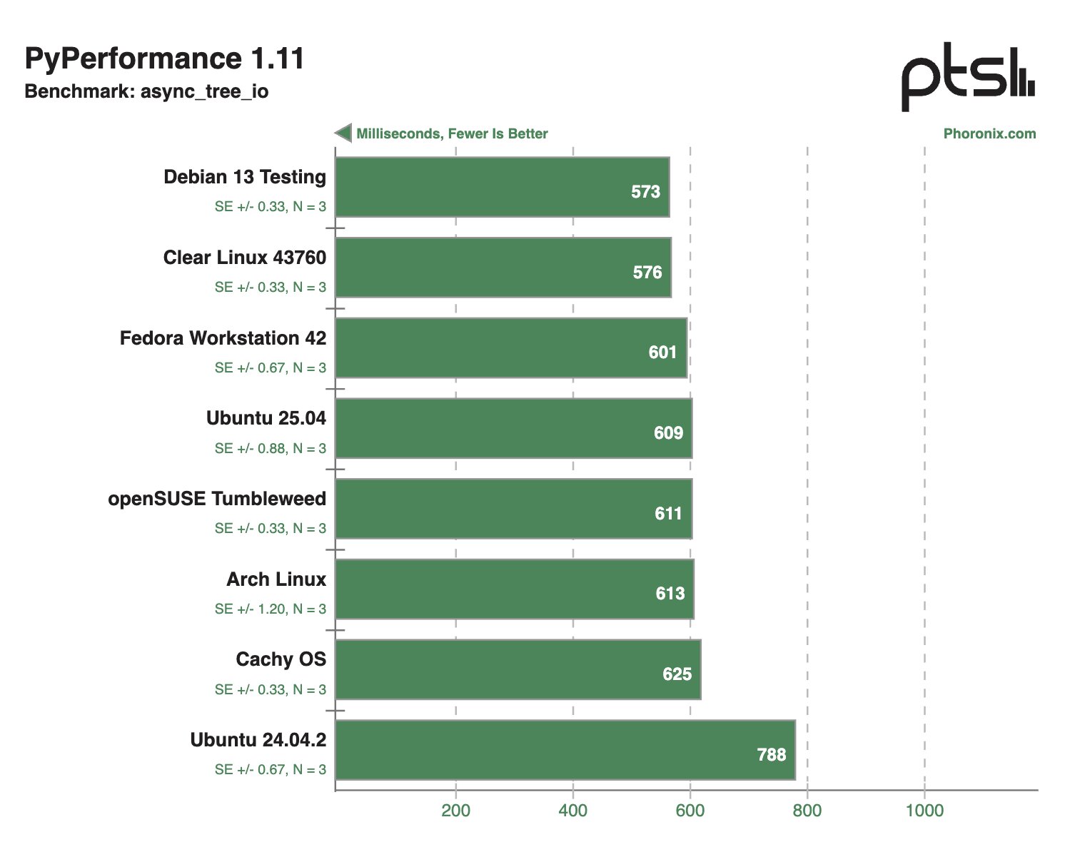 В других синтетических тестах Clear Linux и Debian 13 Testing тоже демонстрировали внушительные результаты, моментами опережая конкурентов в два раза.