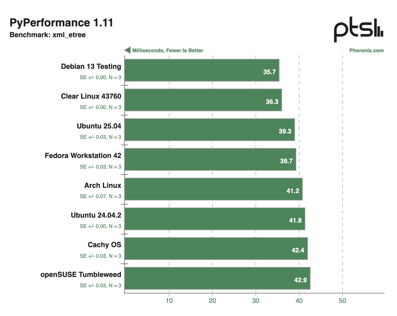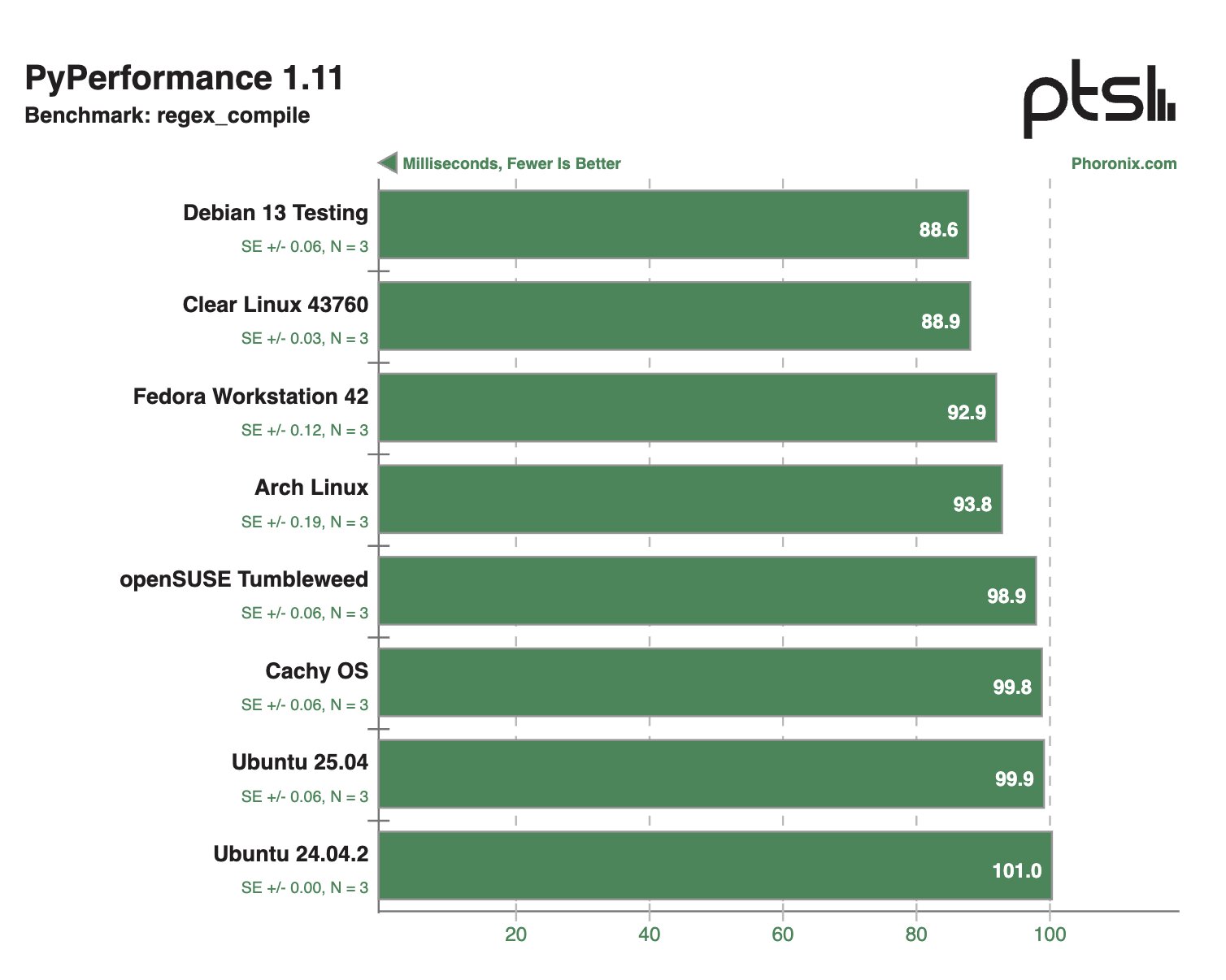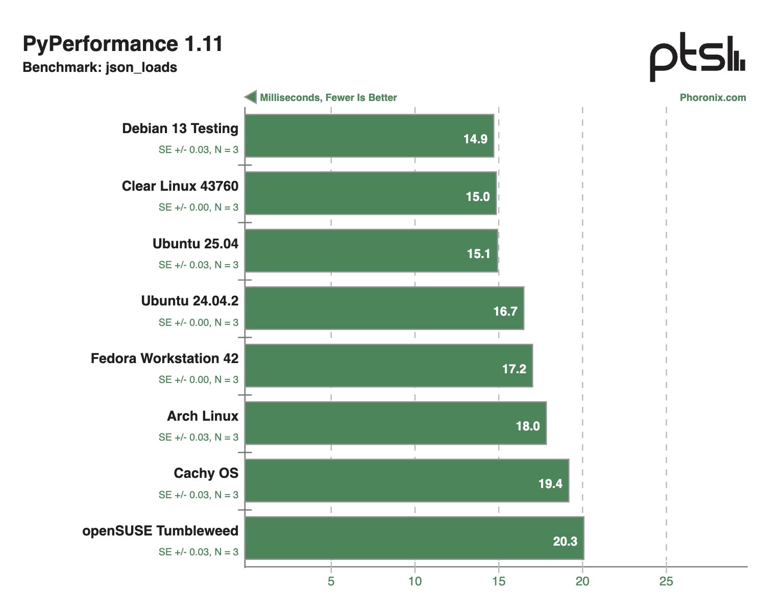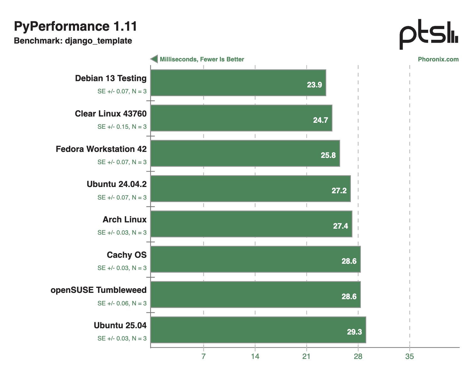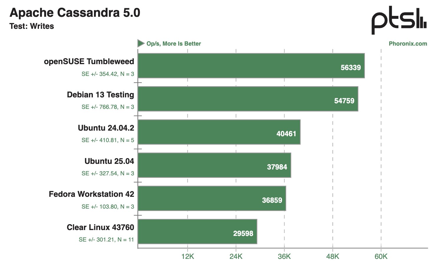 В других синтетических тестах Clear Linux и Debian 13 Testing тоже демонстрировали внушительные результаты, моментами опережая конкурентов в два раза.