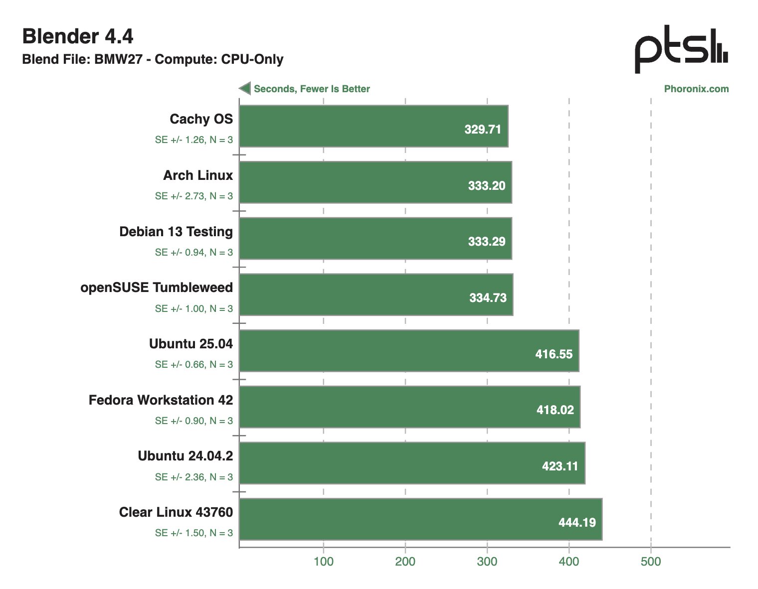 Дистрибутивы CachyOS, Arch Linux, Debian 13 Testing и openSUSE Tumbleweed показали себя лучше остальных испытуемых в рамках программного обеспечения для 3D-моделирования Blender.