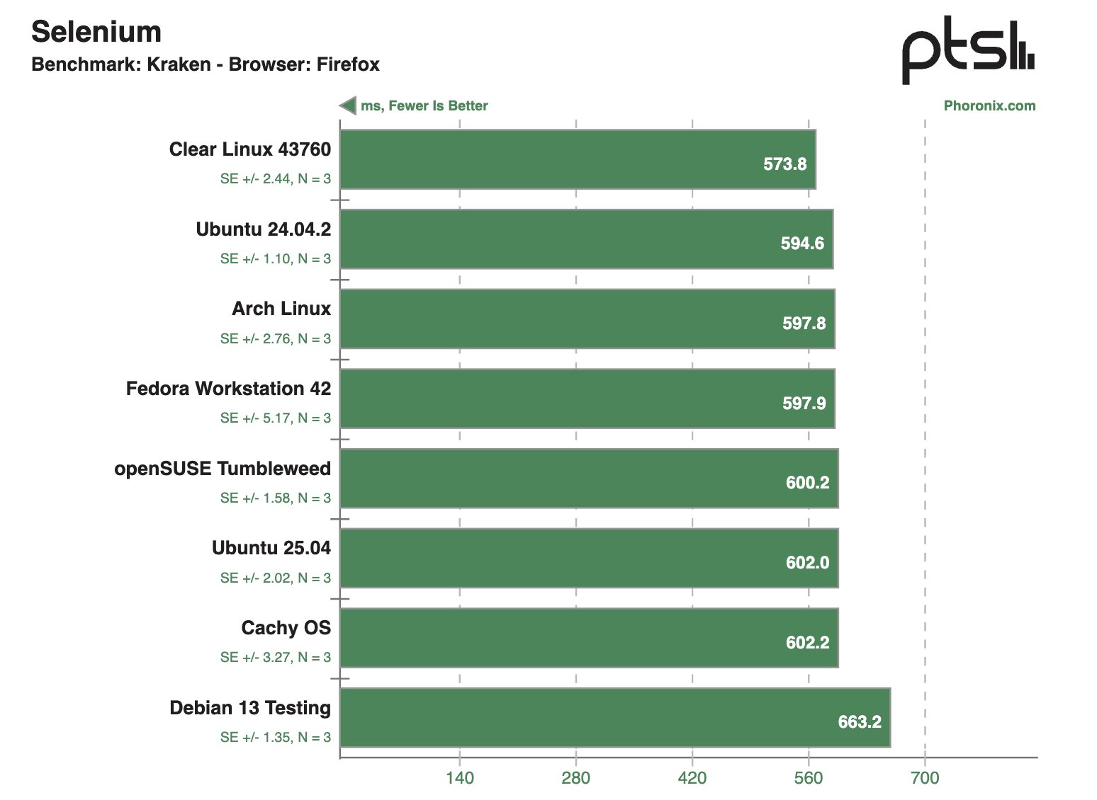 Автор исследования отмечает, что для всех бенчмарков использовался один и тот же ноутбук Framework 12 с Intel Core i5 1334U, 16 ГБ оперативной одноканальной памяти DDR5-5200, твердотельным накопителем WD_BLACK SN770M на 1 ТБ и интегрированной графикой Iris Xe (поколение Raptor Lake). При этом все дистрибутивы тестировались со всеми обновлениями, доступными на момент проведения исследования.