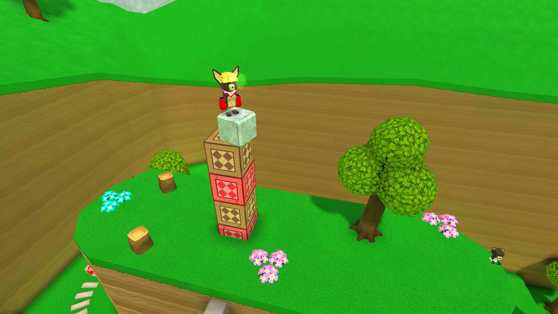 - Берём каменный блок и идём к вышке из цветных блоков, которая находится на стартовой локации