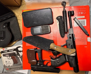 Читать дальше...Мачете и два пистолета изъяли сотрудники подмосковной полиции у вымогателей, задержанных в городском округе Электросталь. Фото: Лилия Шарловская тестовый баннер под заглавное изображение Как сообщили «365NEWS» в Управлении информации и общественных связей ГУ МВД по Московской области, двое мужчин 20 и 26 лет, а также 17-летняя девушка вымогали 200 тысяч рублей в счет несуществующего долга
