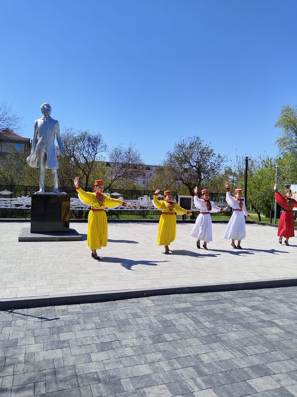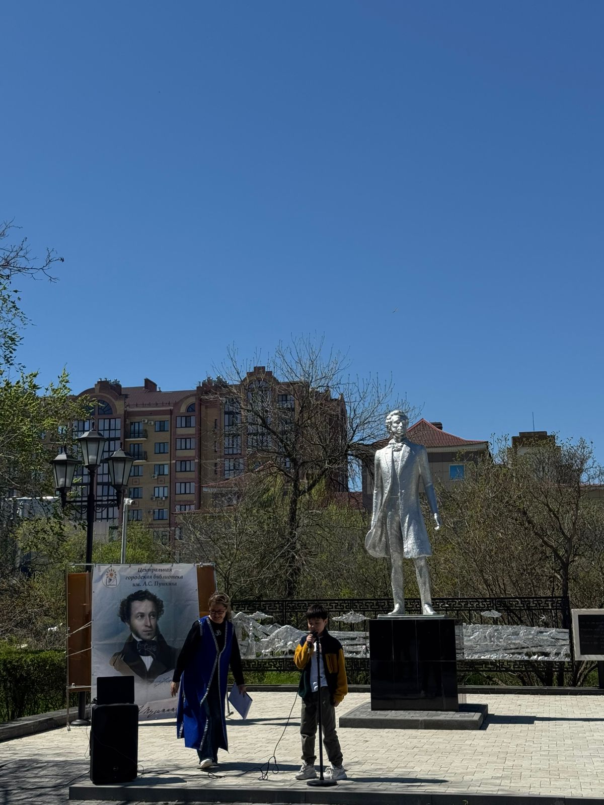 В сквере Пушкина городская библиотека его имени проводила чтения «Поэтами воспет мой край степной» в формате открытого микрофона. Стихи о тюльпанах, степи, Калмыкии читали участники всех возрастов. Участников вольного чтения встречали Пушкин и «любезная калмычка». В эти образы перевоплотились сами библиотекари – известные мастерицы на все руки. Восхитило зрителей выступление юных артистов музыкальной школы № 2.