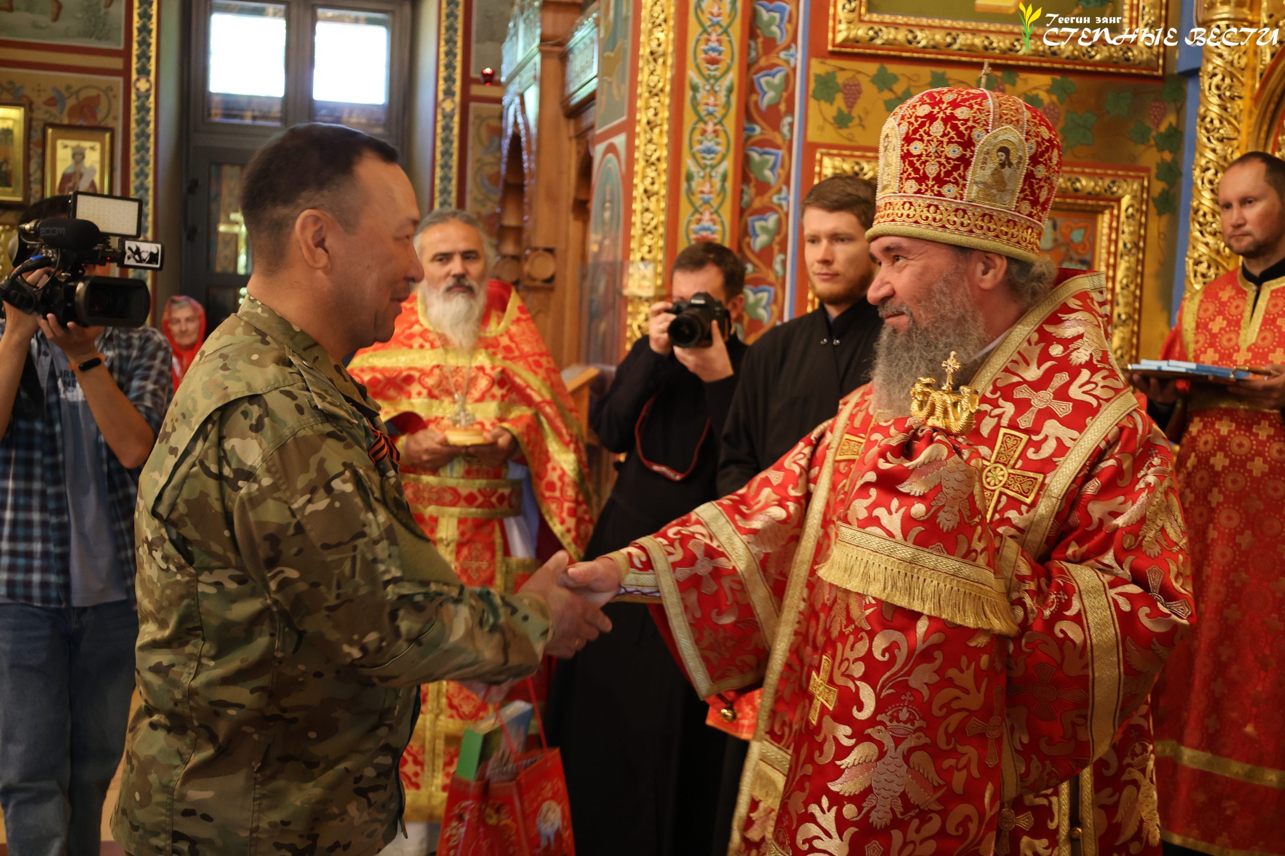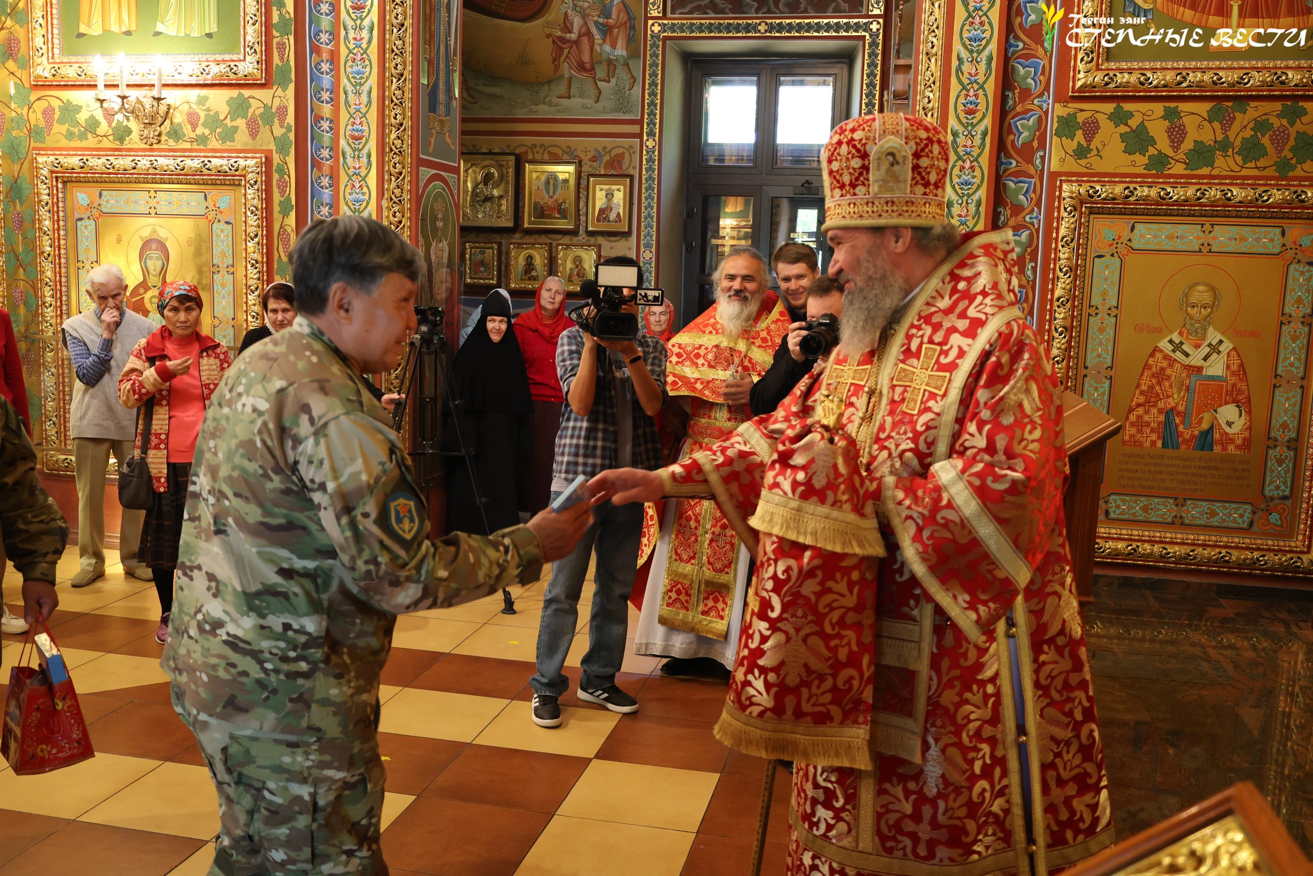 «Мне приятно видеть сегодня тех, кто принял на себя труд ратного служения и старается не думать о страхах, молитва наша сопутствует воинам», – сказал владыка. Архиепископ Юстиниан адресовал теплые пожелания защитникам Отечества и всем общественникам, помогающим военнослужащим, ветеранам и семьям погибших героев. Он вручил гостям символические подарки.