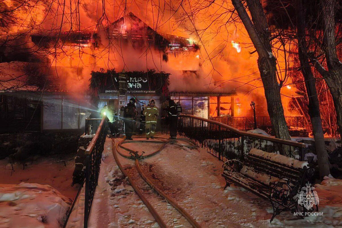 Деревянное двухэтажное кафе загорелось в Елизовском муниципальном округе Камчатского края. Об этом сообщило региональное управление МЧС России в Telegram-канале.