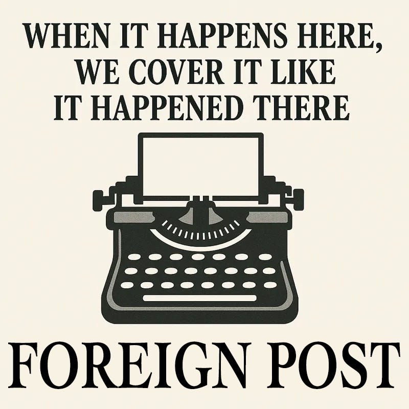 Subscribe to Foreign Post—where U.S. news is covered like it’s happening “over there.”