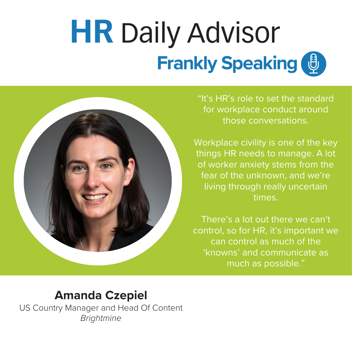 Amanda Czepiel, HR legal expert at Brightmine, sat down with us to discuss all things HR needs to know to lead their teams through these tumultuous times. Here’s what she said about managing worker anxiety, and what HR can and can’t control.