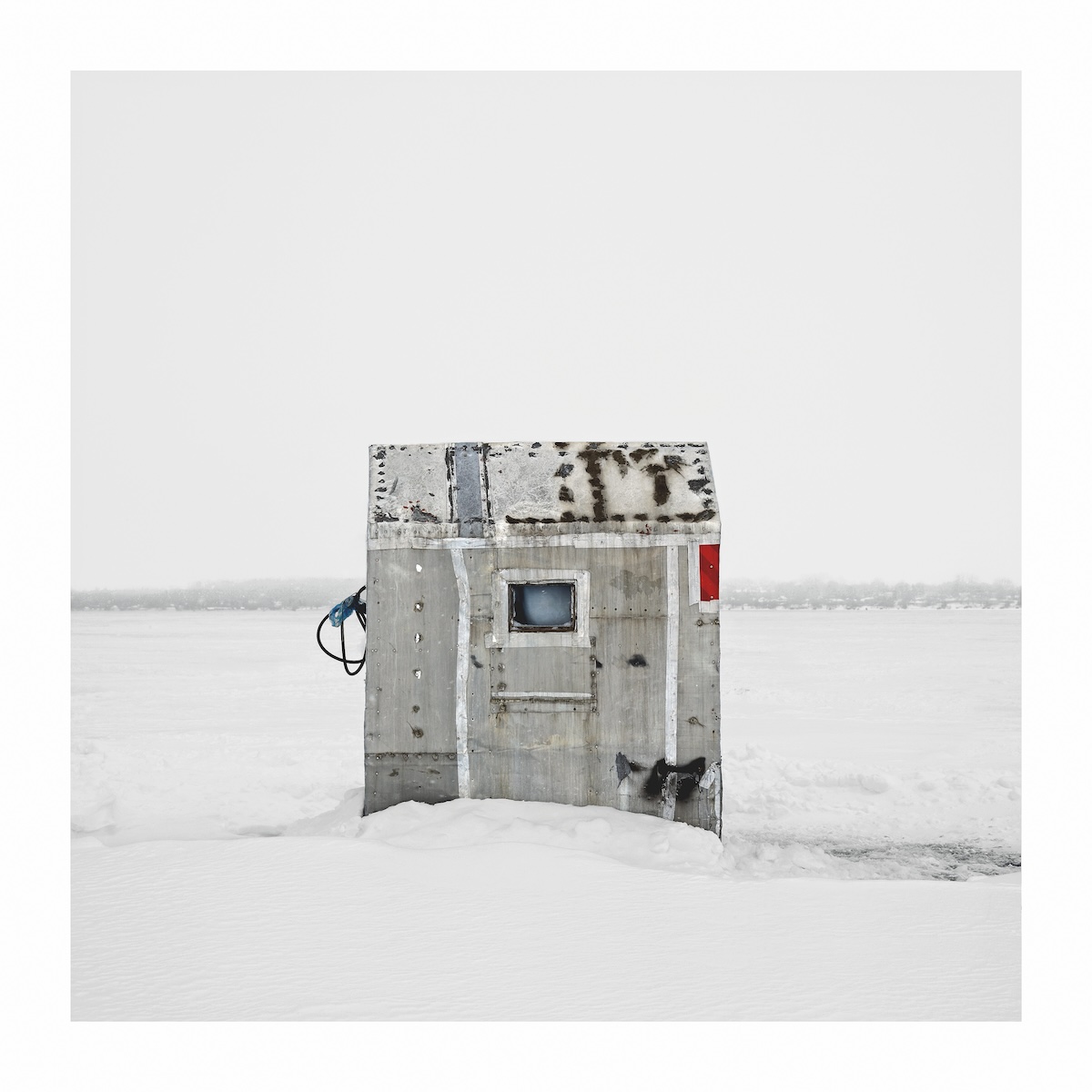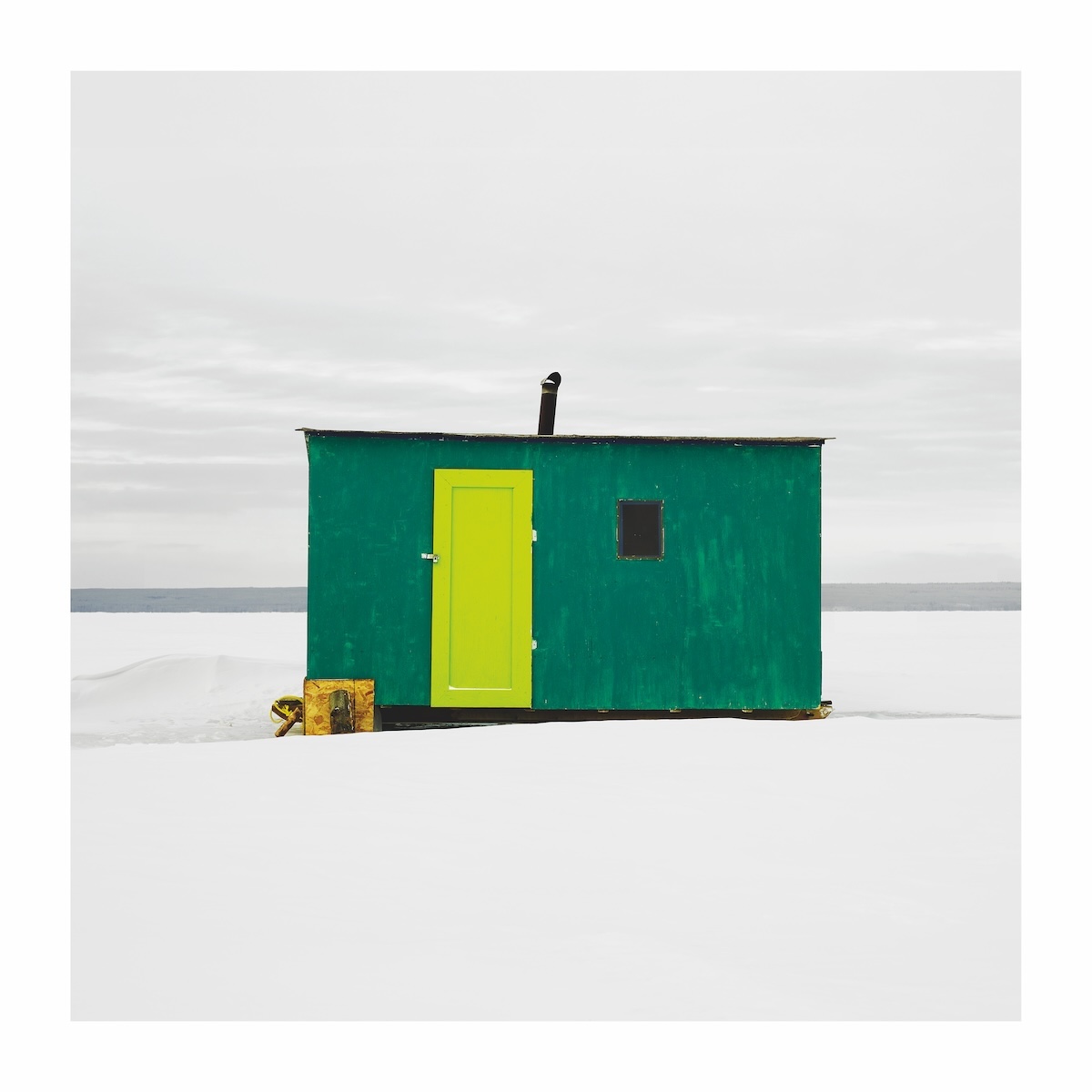 Growing up along the shores of the Kennebecasis River in Renforth, New Brunswick, I watched as ice fishing huts appeared each winter on the frozen surface. They arrived with the season, clustered closely together—part settlement, part mirage—and vanished just as predictably. I never fished from them. My relationship to these structures was almost entirely visual, formed through repeated observation until their presence became habitual.