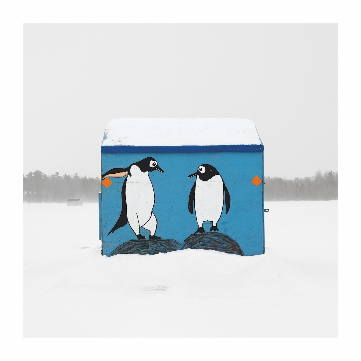 For all their modesty, ice fishing huts have become recognizable features of the Canadian winter landscape, punctuating stark expanses as markers of human presence. Read collectively, they function as temporary infrastructure while carrying the visual language of a vernacular folk art tradition, forming a pragmatic response to climate and place that balances necessity with expression.
