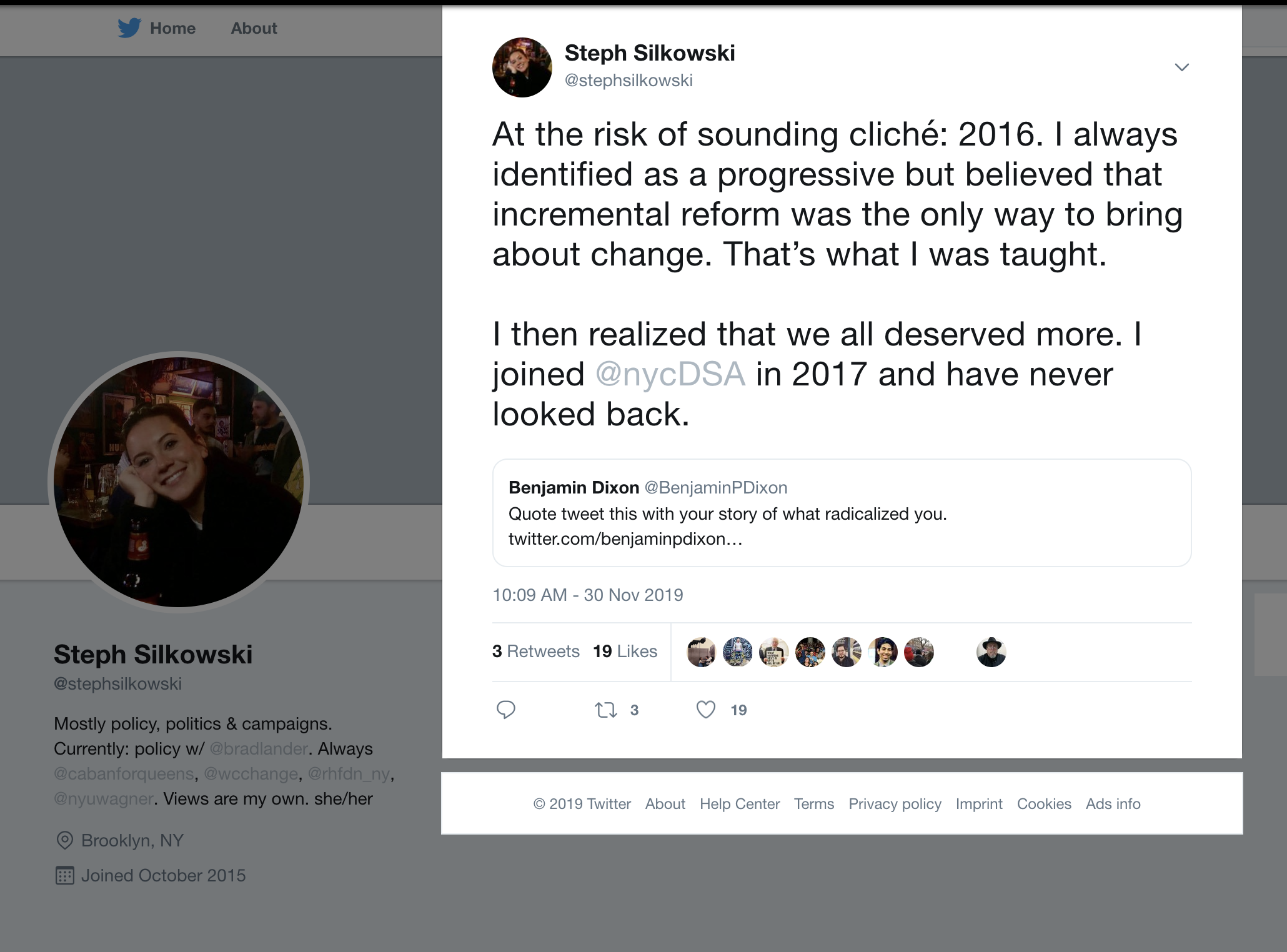 Ahead of the 2021 City Council elections, Silkowski wrote favorably of then-candidate Shahana Hanif (D.) and her plans for "defunding police" and "abolition."