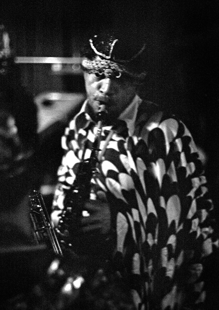 Regarded as one of the greatest tenor saxophonists in the history of jazz, John Gilmore was a central sound in the Arkestra. Born in Mississippi and raised in Chicago, Gilmore first learned the clarinet before taking up the tenor saxophone while serving in the United States Air Force in the late 1940s. After leaving the military, he pursued a professional music career and toured as a tenor saxophonist with an ensemble that accompanied the Harlem Globetrotters.