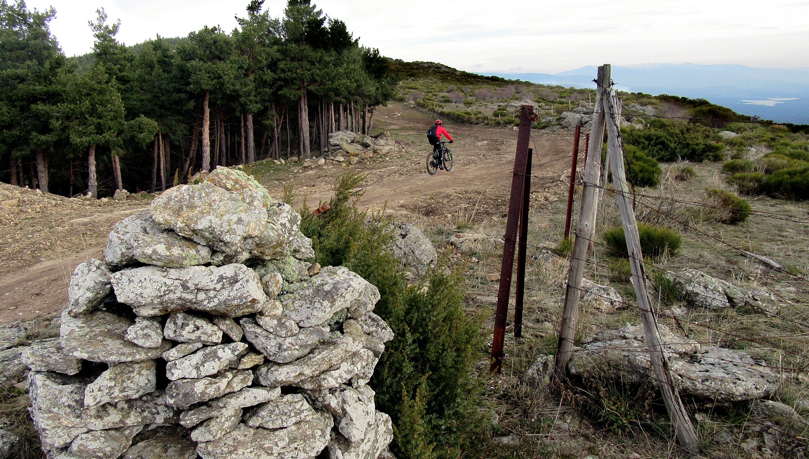 Trazamos un bucle nuevo en lugar de coger el primer tramo del cortafuegos, pero apenas ganamos unos metros antes de volver a tomar trazado ya conocido hacia el punto más alto de la ruta en el Cancho de los Altares(1768 m). Por delante, el cordel hasta el Alto del Espartal (1733 m) que te hace recorrer una serie de duros toboganes que impresionan a la vista y que cada cual ataca con sus fuerzas, olvidándose de amigos y conocidos.
