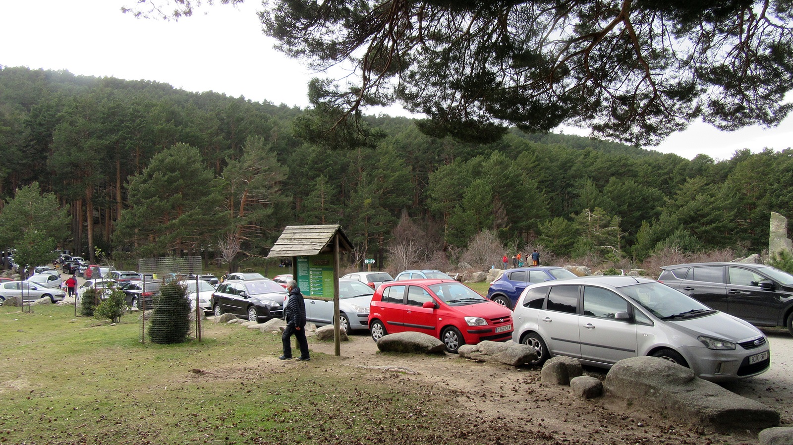¡Caray! ¿Qué regalan aquí? La zona está plagada de vehículos, aparcados en las zonas habilitadas y en cuantos márgenes de la pista o carretera les ha permitido… Y que conste que el día está nublado y refresca. ¿Qué será cuando haga buen tiempo? Todos necesitamos respirar aire puro y disfrutar de la naturaleza.