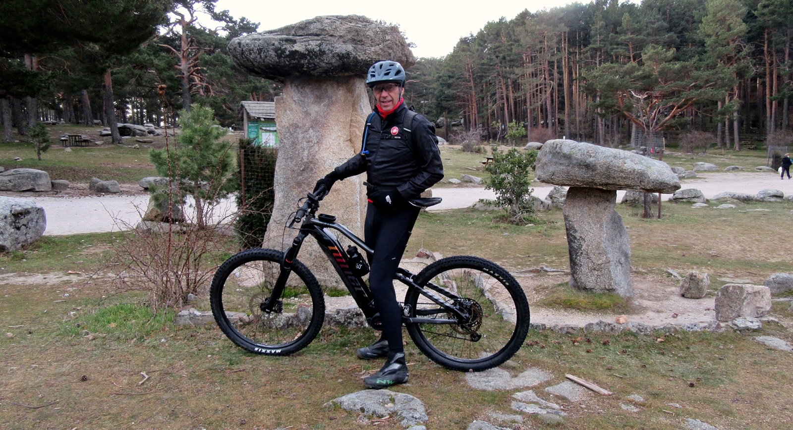 Nuestras primeras pedaladas recorren una pista ancha que en apenas kilómetro y medio nos lleva hasta la antigua Casa del Hornillo, hoy el Centro de Educación Ambiental el Hornillo y desde aquí a la primera bifurcación de caminos que cogemos por la derecha para seguir la Senda del Arroyo del Sestil del Maillo.