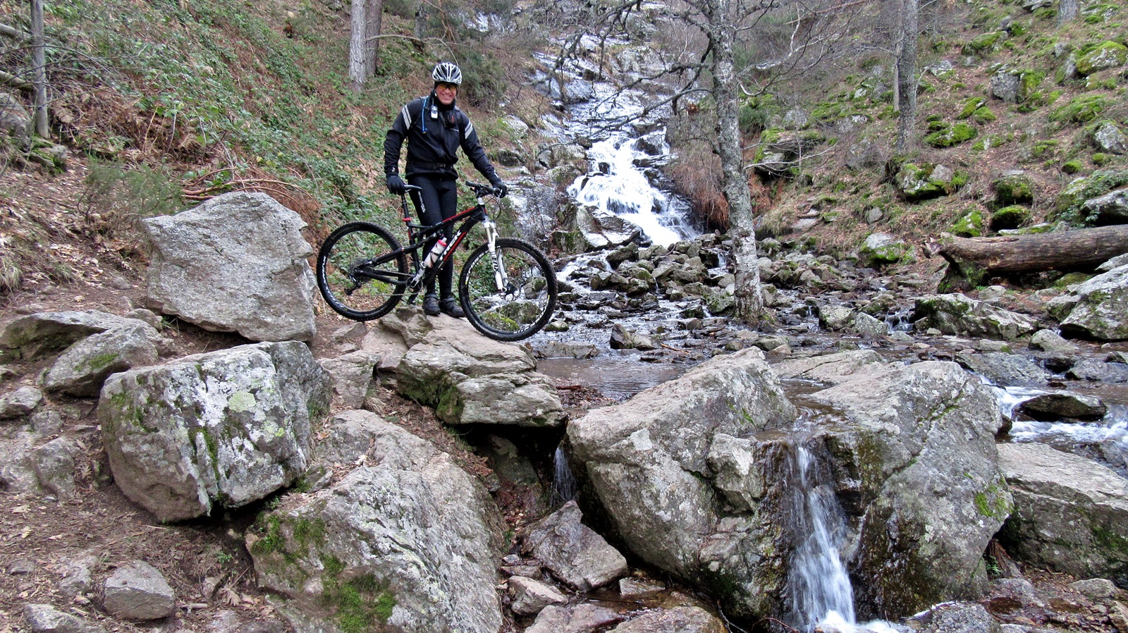 Este nuevo trazado alarga y endurece la ruta, pero lo cierto es que nos ofrece unos parajes abiertos y muchos más bellos por los márgenes del arroyo de los Tejos y adentrándonos en el Prado Toril que rezuma agua por todos sus costados en el nacimiento del arroyo de las Chorreras, además de conservar bastante nieve sobre la que tendremos que rodar. La temperatura está bajando.