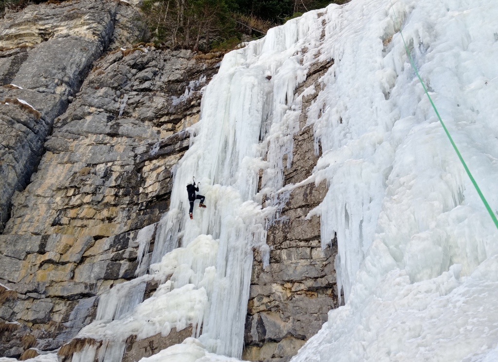 La ligne la plus à gauche de la cascade de droite de Gialorgues, un peu moins difficile qu’habituellement, 5+ :