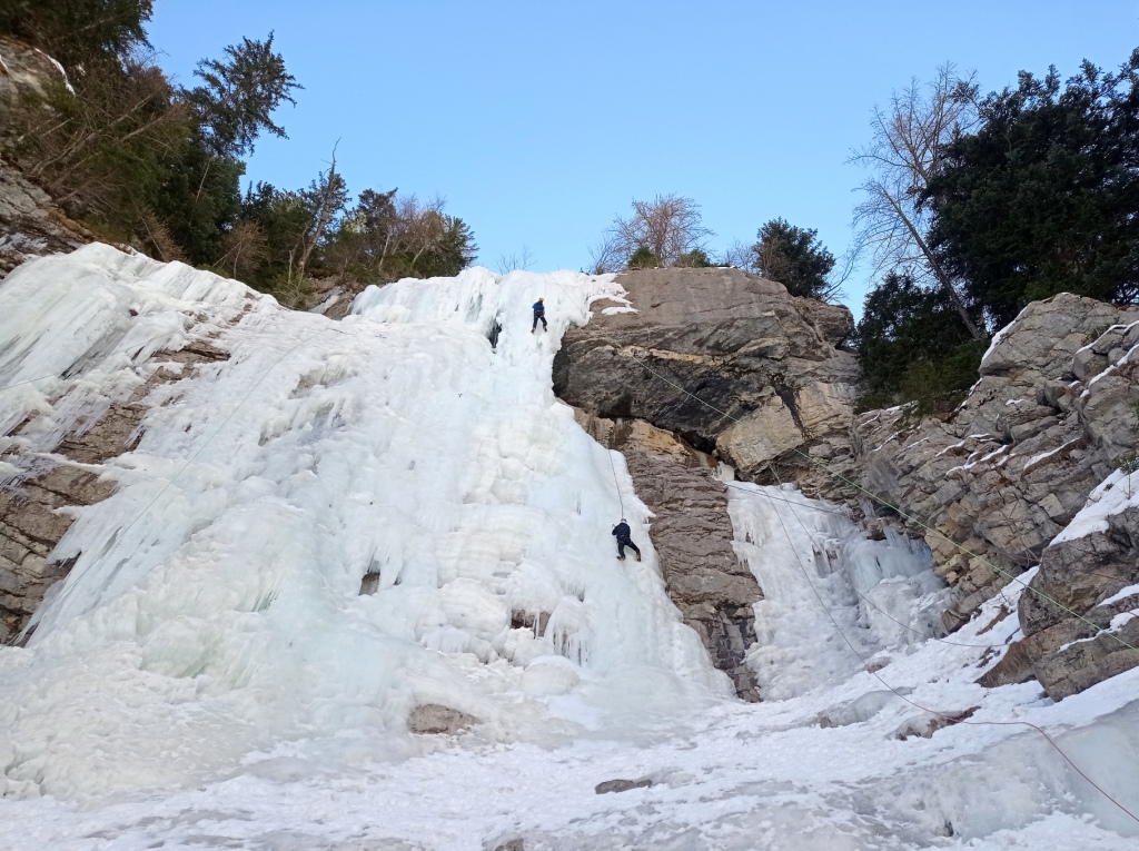 Samedi 21 février 2021, dans le cadre de la formation alpinisme nous sommes allés à Gialorgues sur la superbe cascade de droite.